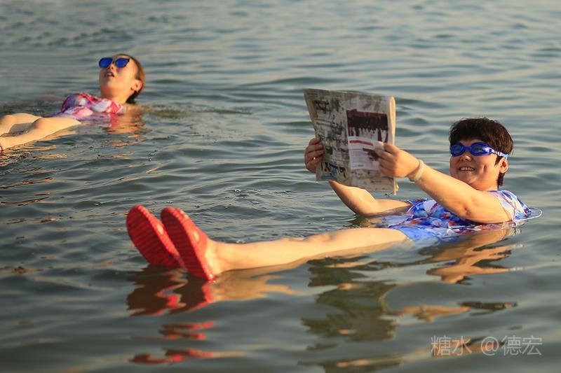 总结了一下中国人泡死海的注意事项(老外免谈): 1、千万别往深处走,底下有黑泥,陷进去,你就成咸鱼了; 2、千万小心,眼口别进水,那个咸让你高烧不退; 3、千万别长时间漂浮,顶多5分钟,拍个照拉倒,否则你起身后,晒成了盐人; 4、身上有伤的人千万别下水,否则疼得你犹如有人举着火钳烫你; 5、浪完后千万要长时间泡澡,否则你会恨自己怎么老是洗不干净; 6、痔疮犯了的人,千万别下水,否则,你“夹着尾巴难做人”。 7、至于黑泥要不要抹,就要看个人,要涂就要全身+脸,否则你就别涂了。据说,第二天全身有牛奶丝滑的感觉。反正我们的人没体会到,因为她们全是假把式。