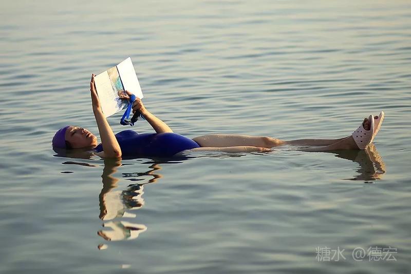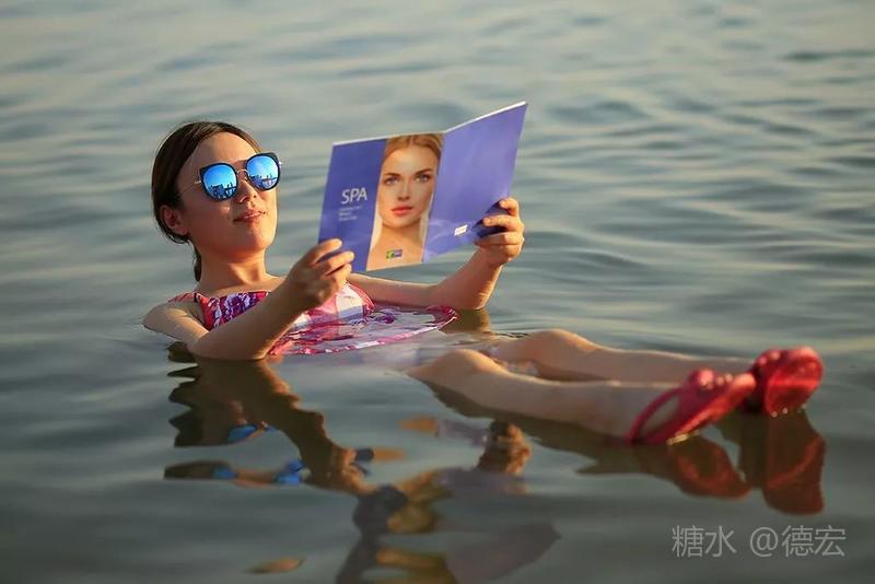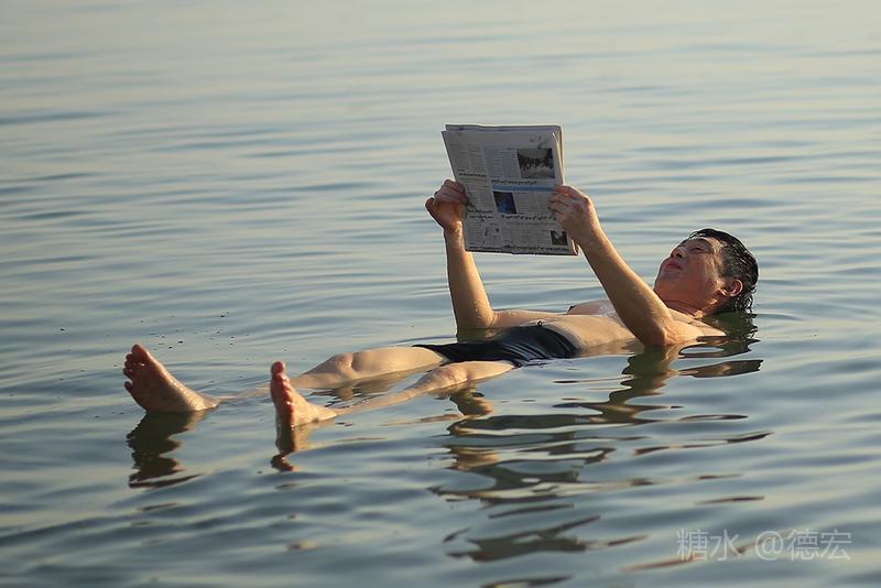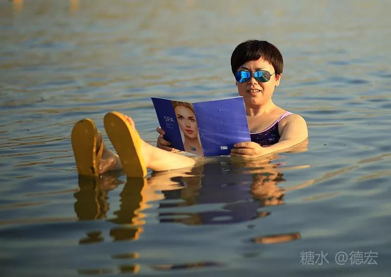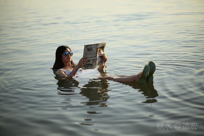 什么漂浮姿势最美呢?大家的认识不断提高。起先,以为“两头跷”最美……直到莉姐出现,我们才恍然大悟,平躺的姿势最悠闲……接着,小伙伴拿来了报纸和杂志,开展了死海“好书共读”活动,结果达到了“读书湿万卷”的境界……