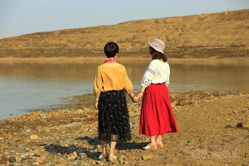 娘子们不约而同,死海边,浪里个浪……