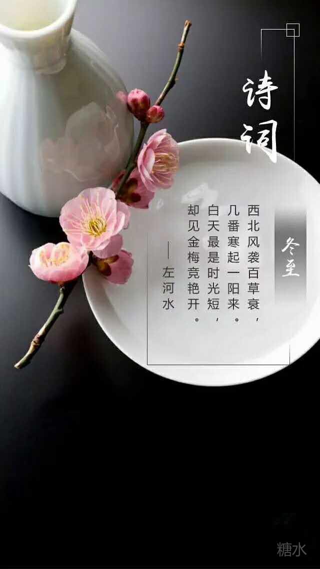 【冬】来瑞雪漫天飘, 【至】此呈上祝语遥。 【快】用锦词添溢彩, 【乐】尝水饺暖心潮。 ————金色阳光