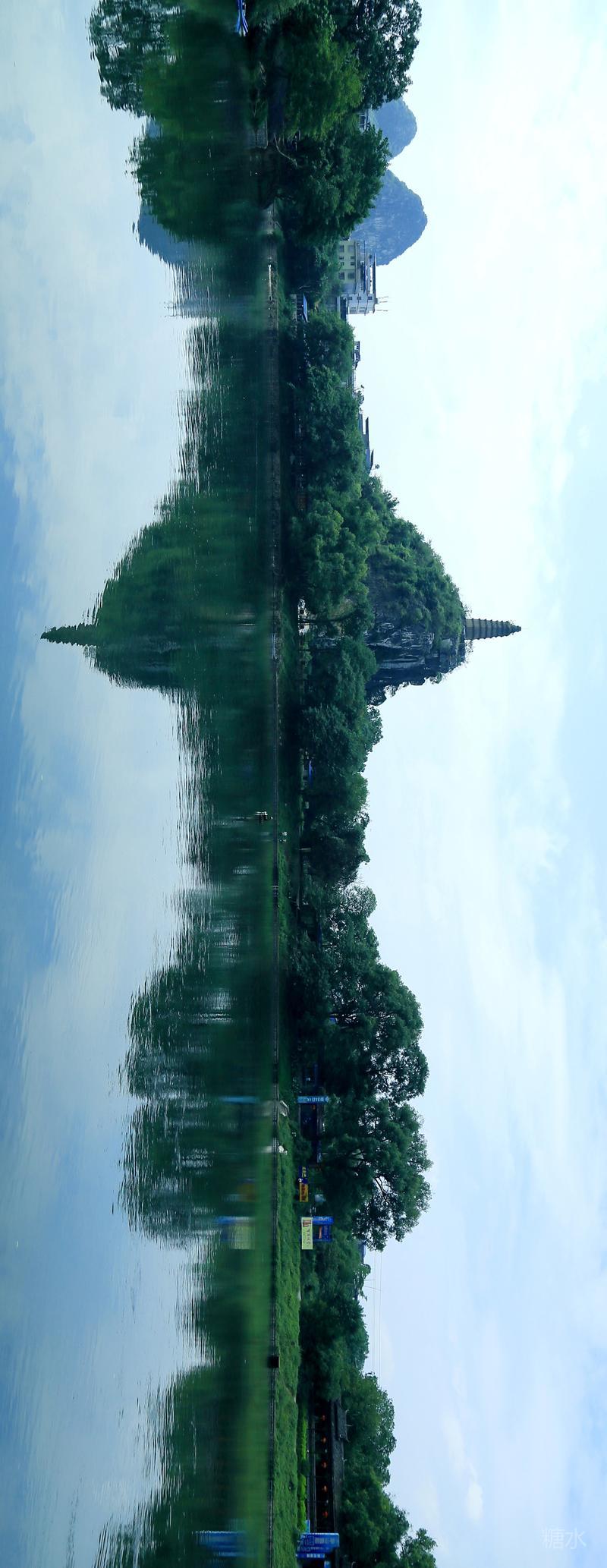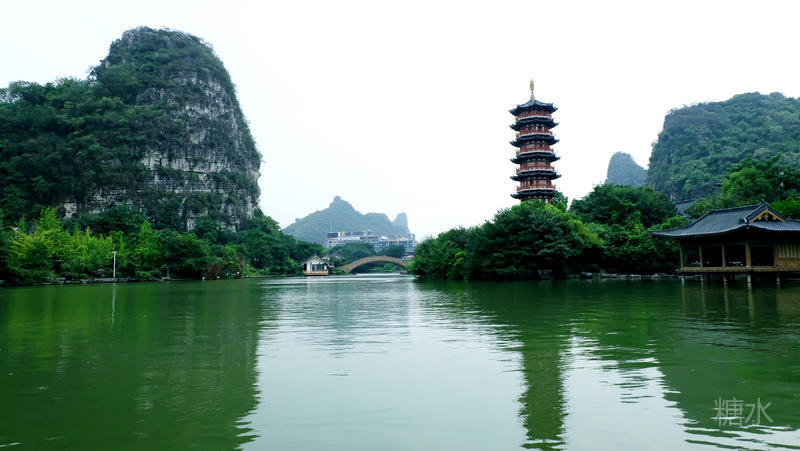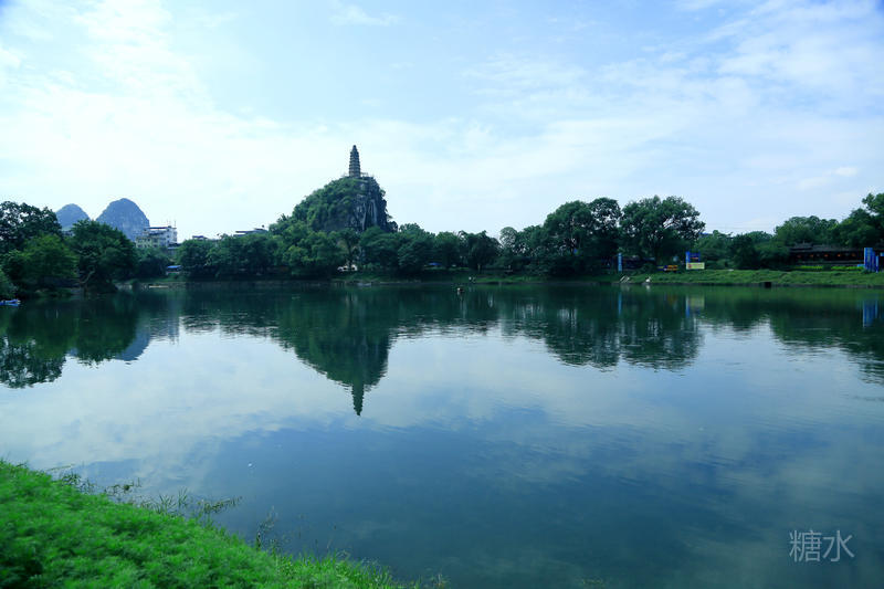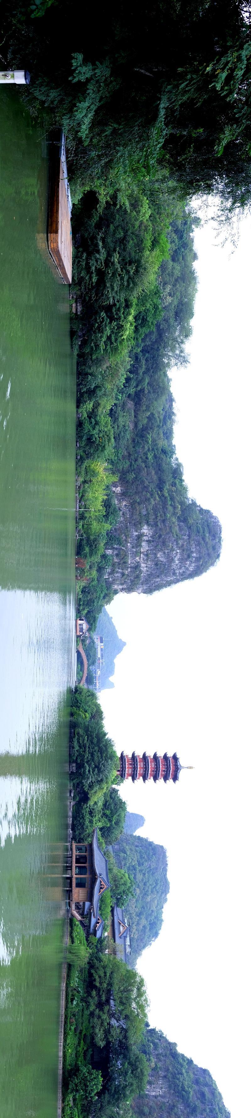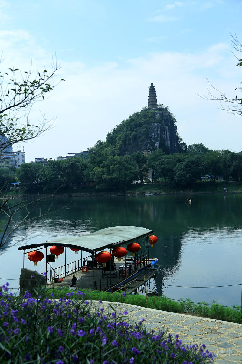 木龙湖 《贺楠》 七层宝塔映湖天,石秀遥牵水榭蓝。 画内清明桥再现,江心翡翠玉相连。 木龙洞里龙舟稳,叠彩山巅彩浪翻。 踏入仙阁人自醉,桂林美景显奇观。