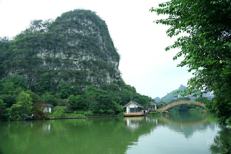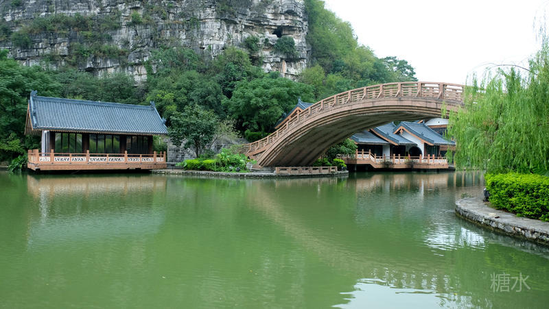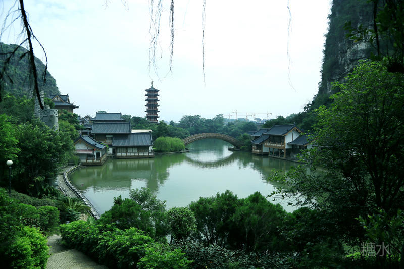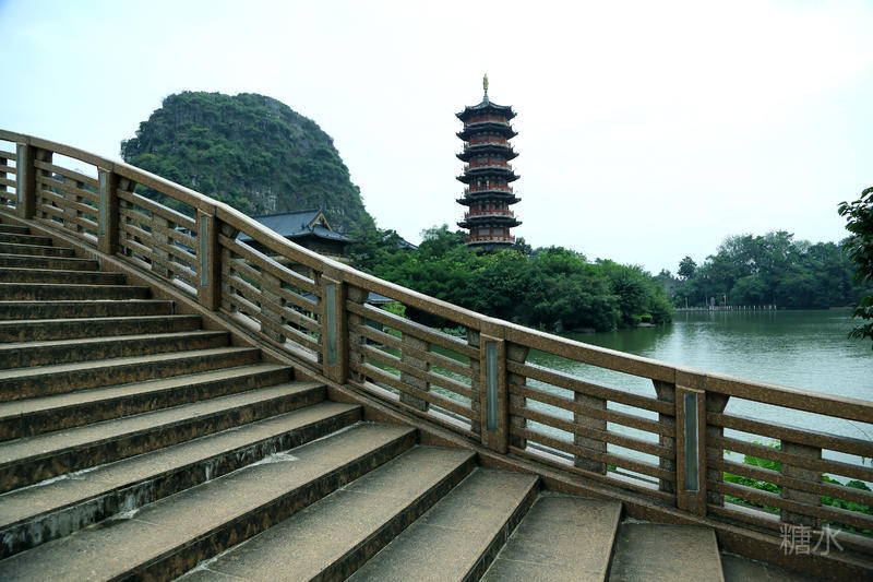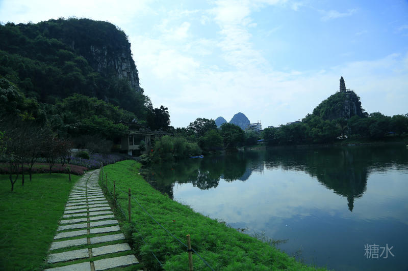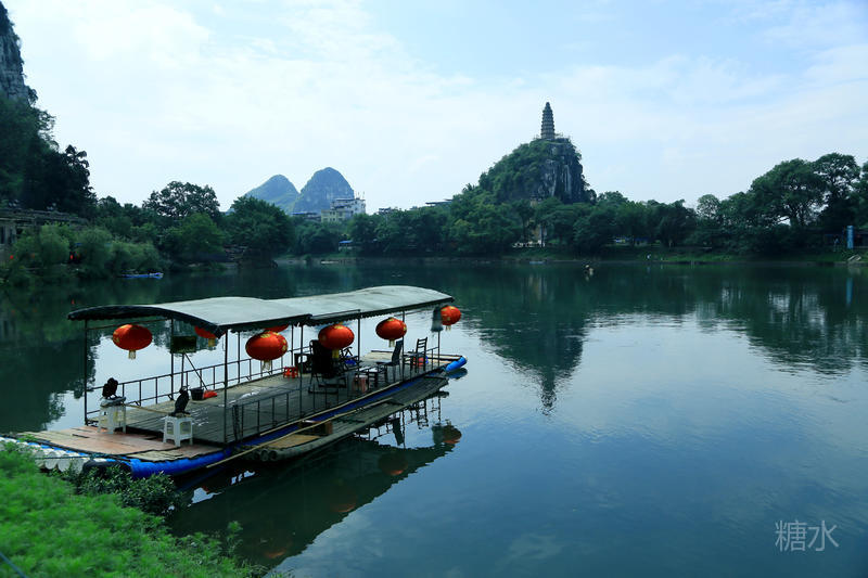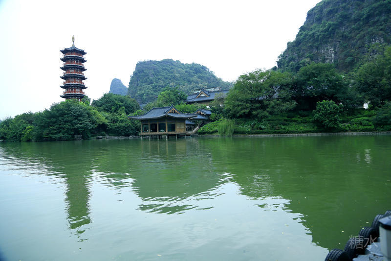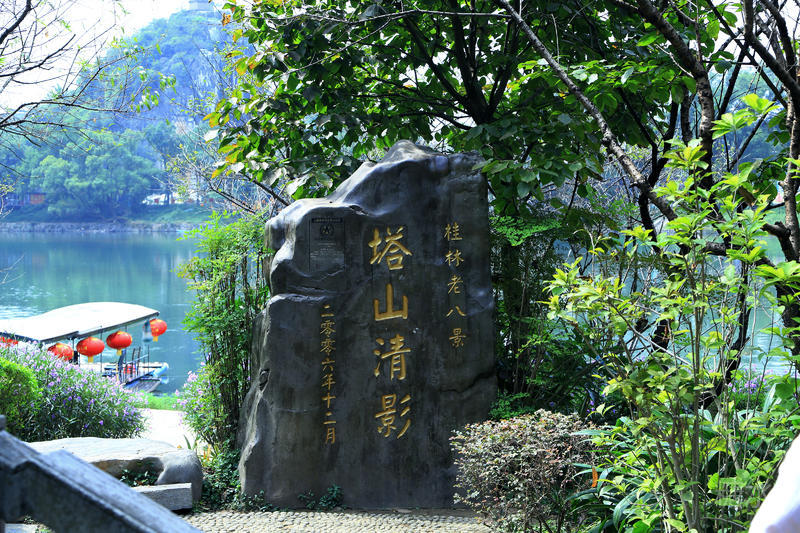 木龙湖 《贺楠》 七层宝塔映湖天,石秀遥牵水榭蓝。 画内清明桥再现,江心翡翠玉相连。 木龙洞里龙舟稳,叠彩山巅彩浪翻。 踏入仙阁人自醉,桂林美景显奇观。