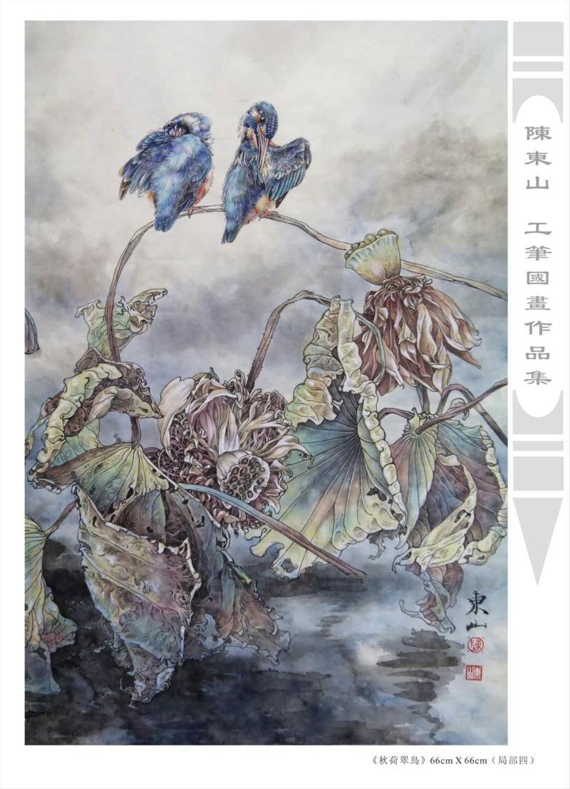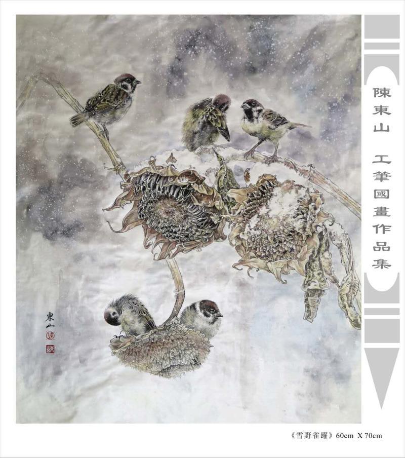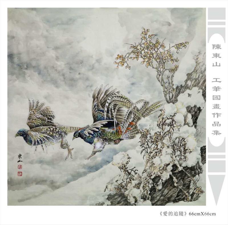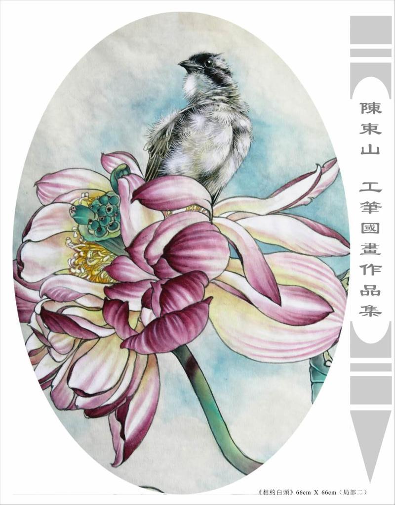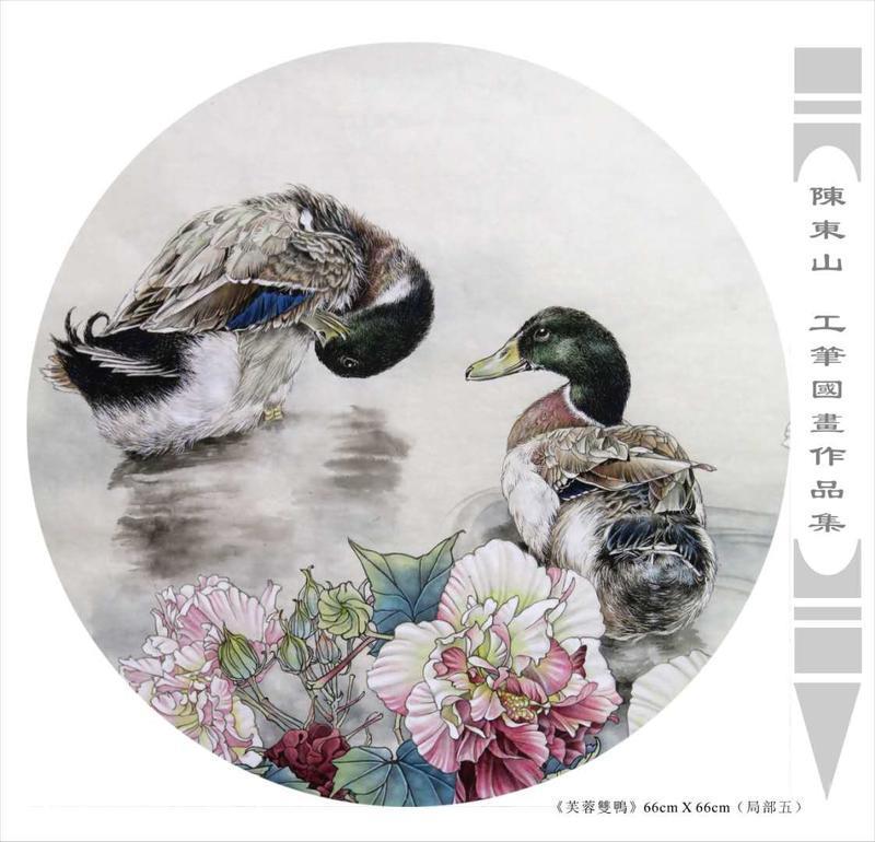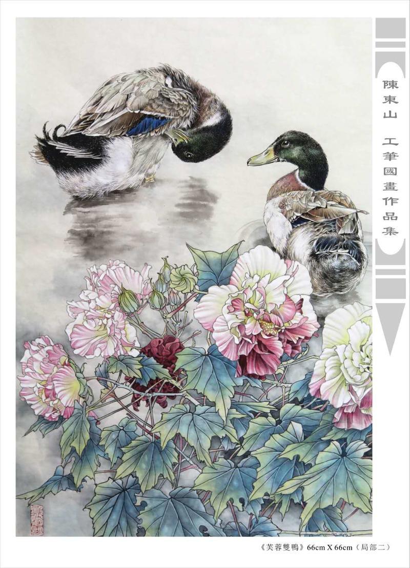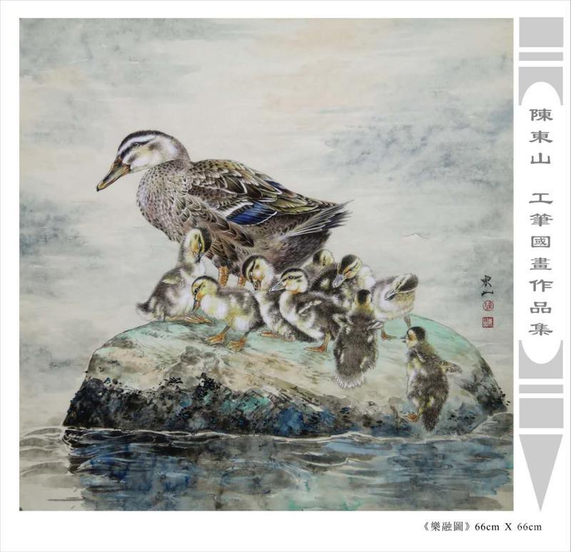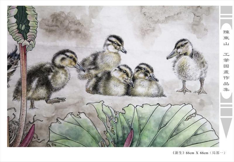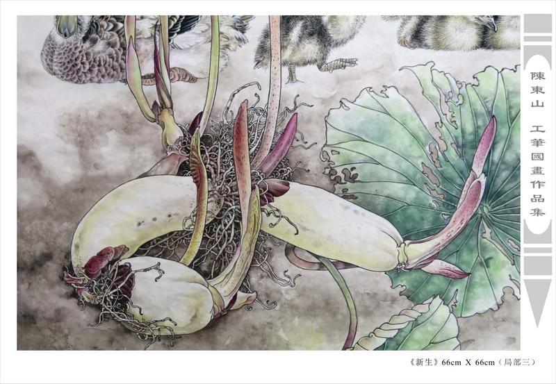 藝術簡歷 陳東山,1961年生於廣東,1980年定居香港, 自幼酷愛繪畫,居港後一直從事中國古代名畫的臨摹和研究工作,經過30多年的探索、磨練。打下堅實的繪畫基礎,終成今日之新風格。陳擅長工筆花鳥,畫風獨特。功力深厚及富有感染力。其作品非常强調物與物之間的相互呼應。雖然只是鵝鴨、雀鴿、蜂蝶又或是竹菊、荷莆、草石,但是在他筆下,每事每物都經過精心的構思,不僅強調其自身的某一特徵,更強調兩者之間在表現瞬間狀態時的整體呼應,因而令他的作品充滿意趣。