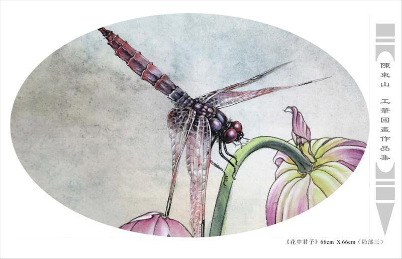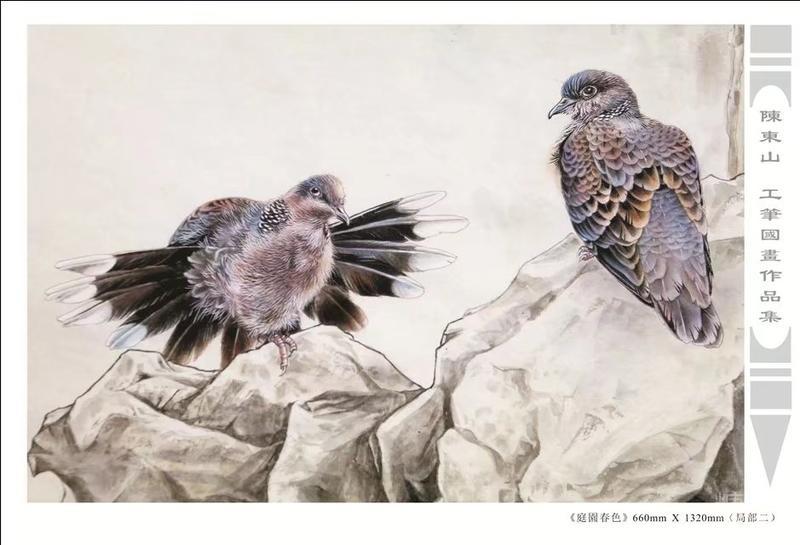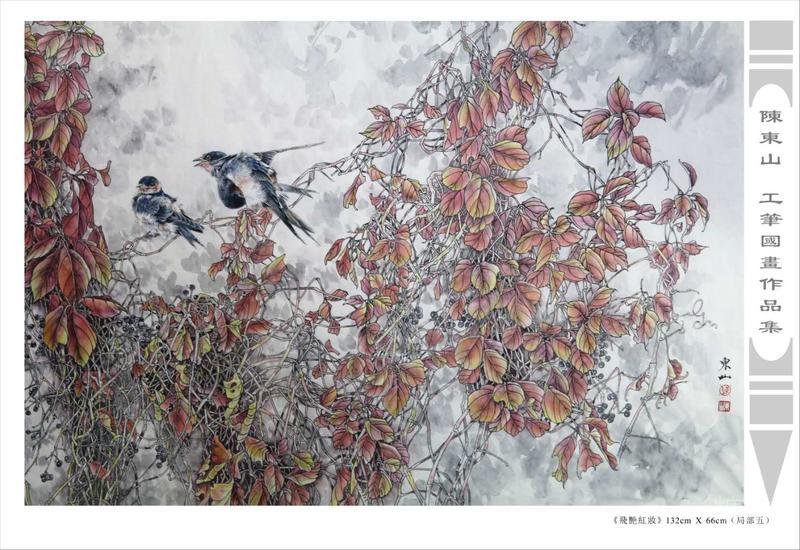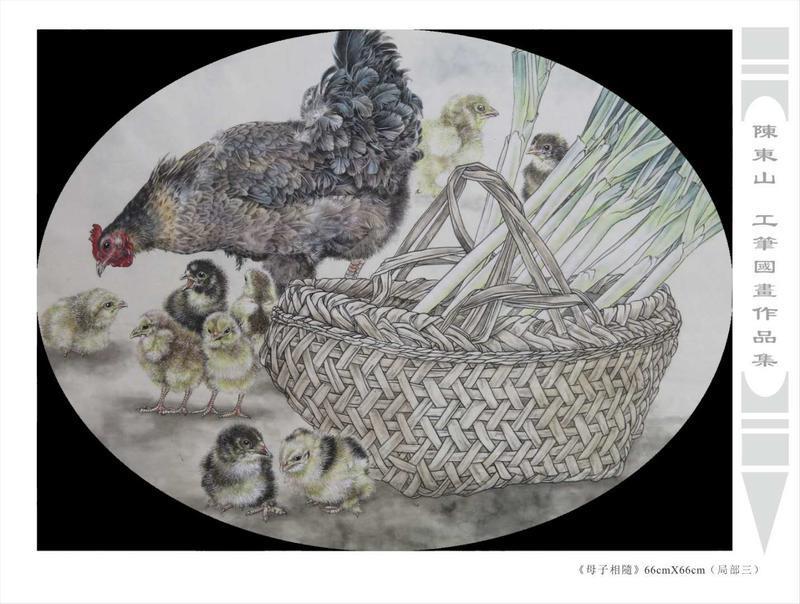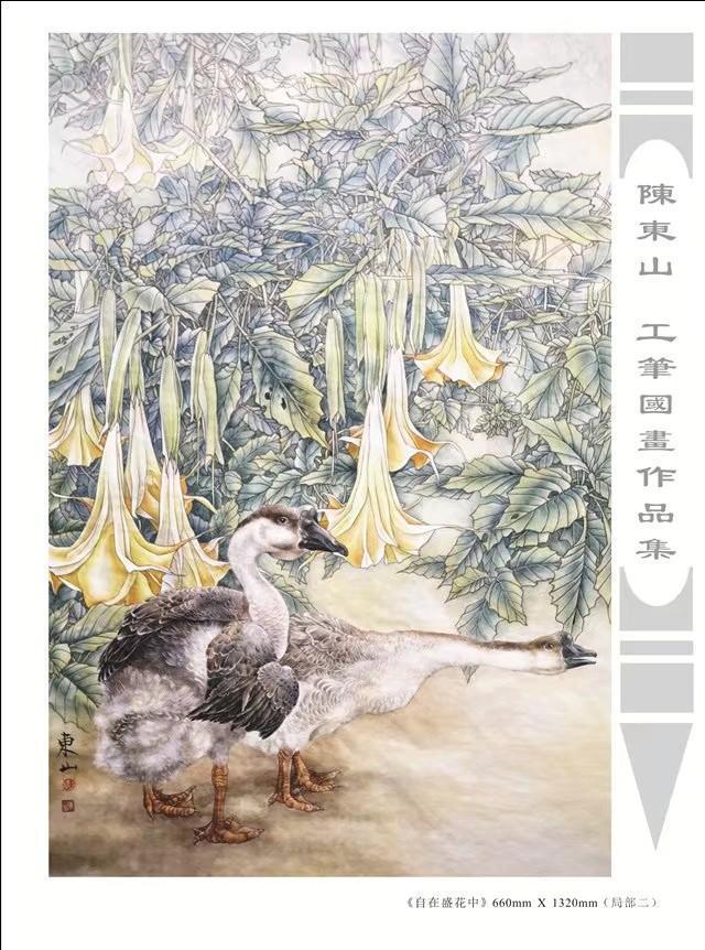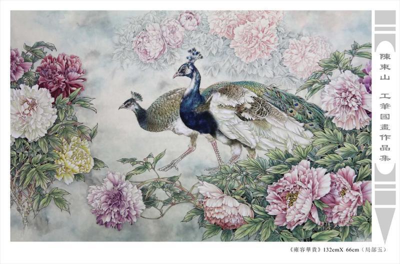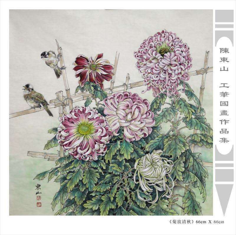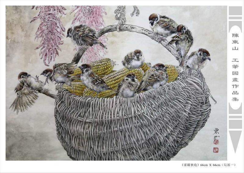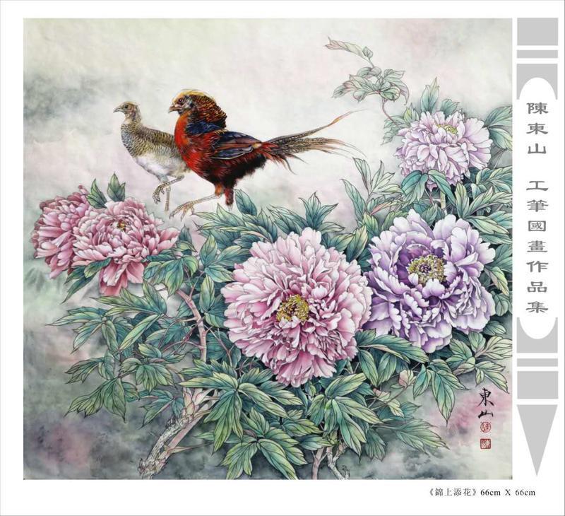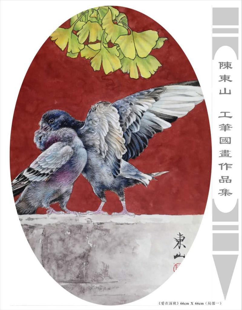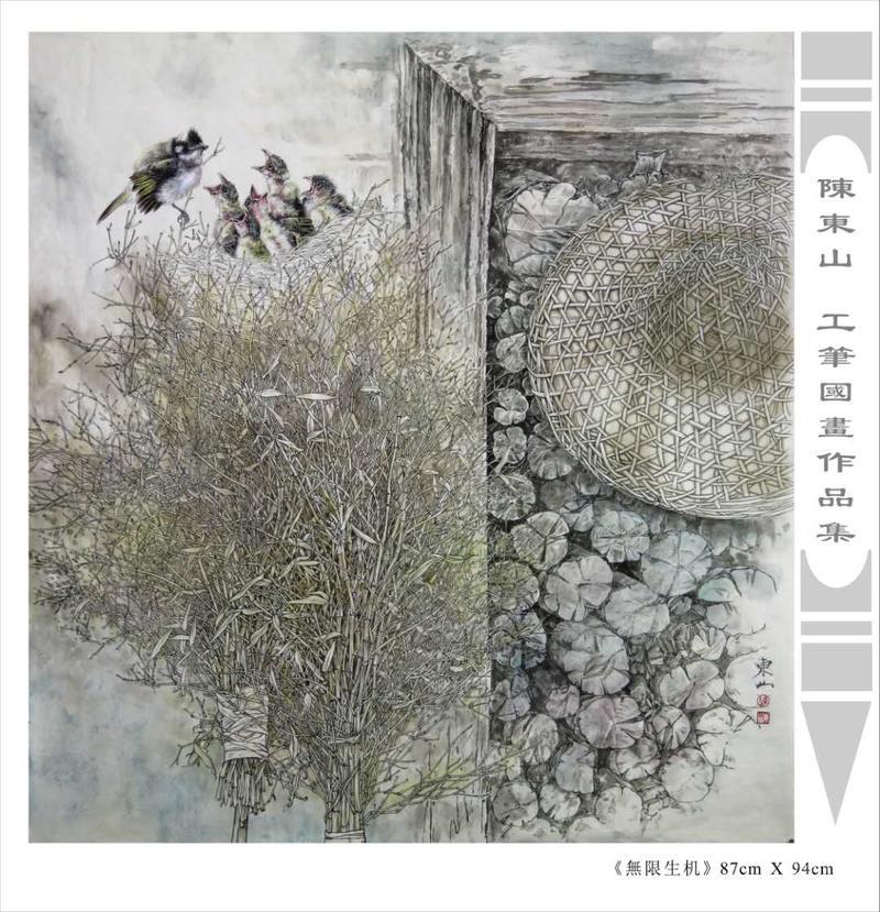 藝術簡歷 陳東山,1961年生於廣東,1980年定居香港, 自幼酷愛繪畫,居港後一直從事中國古代名畫的臨摹和研究工作,經過30多年的探索、磨練。打下堅實的繪畫基礎,終成今日之新風格。陳擅長工筆花鳥,畫風獨特。功力深厚及富有感染力。其作品非常强調物與物之間的相互呼應。雖然只是鵝鴨、雀鴿、蜂蝶又或是竹菊、荷莆、草石,但是在他筆下,每事每物都經過精心的構思,不僅強調其自身的某一特徵,更強調兩者之間在表現瞬間狀態時的整體呼應,因而令他的作品充滿意趣。