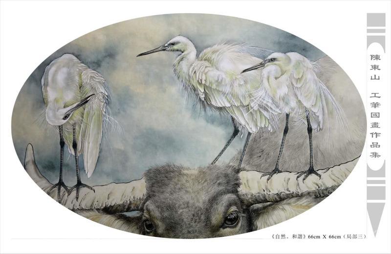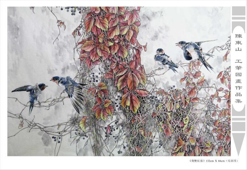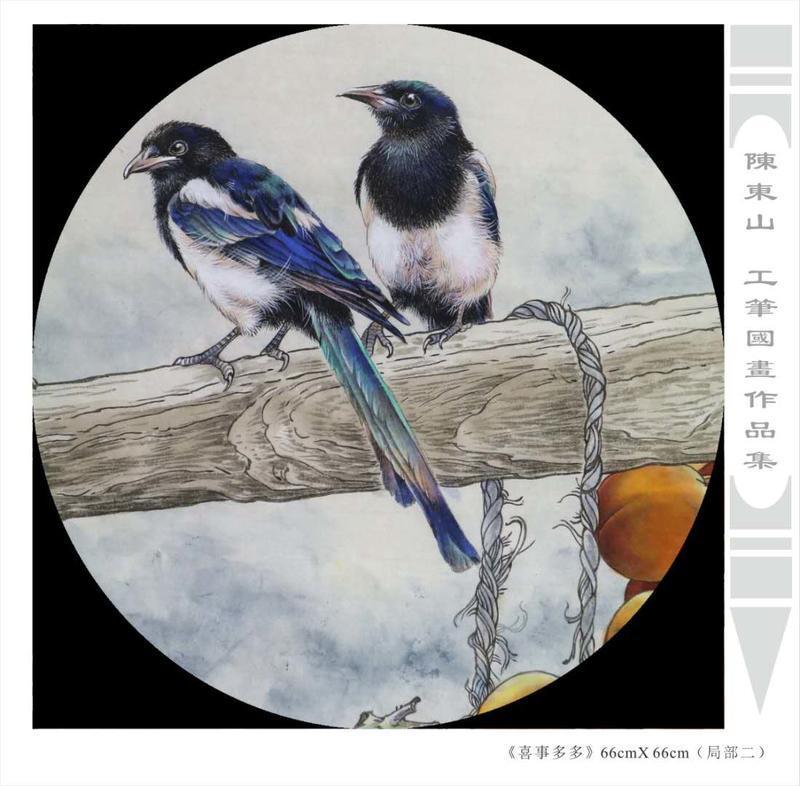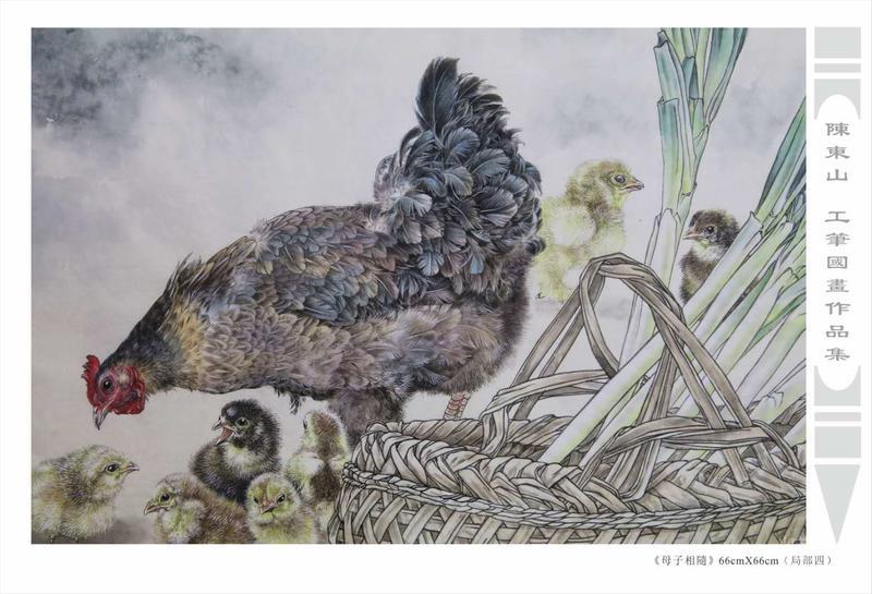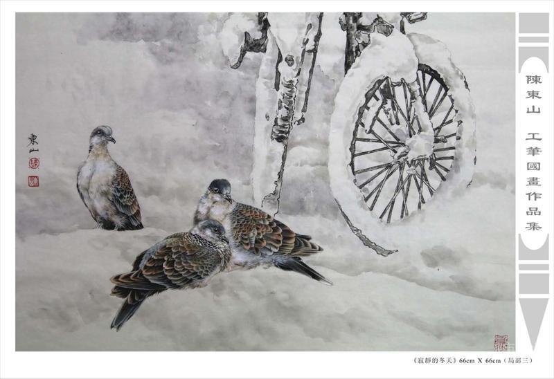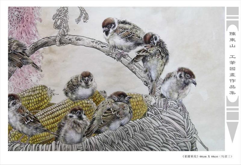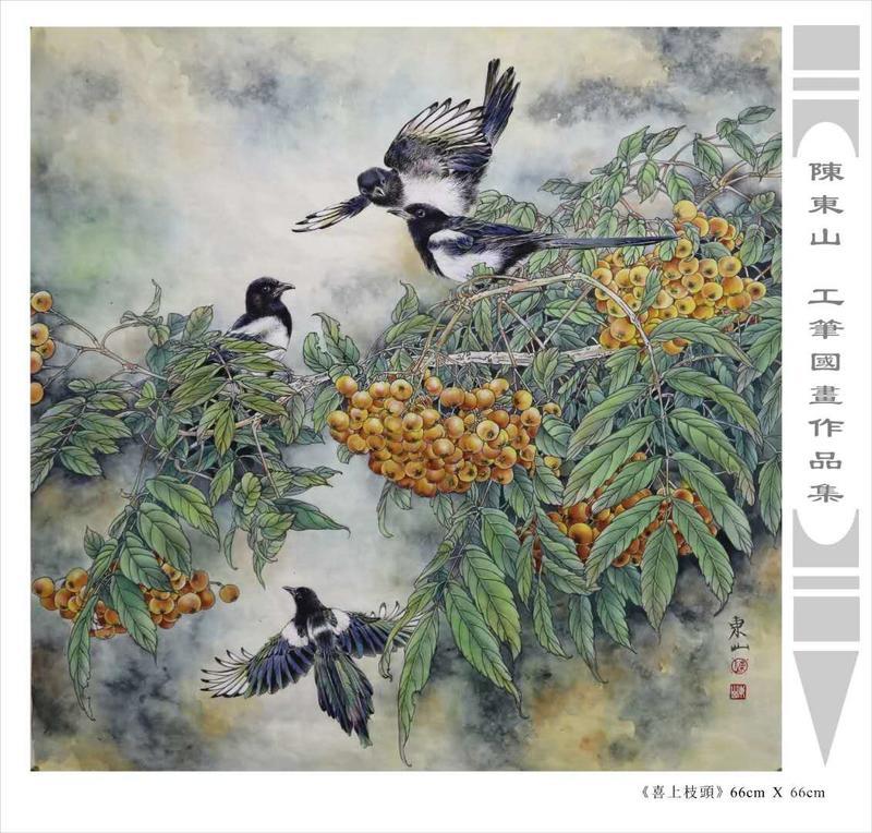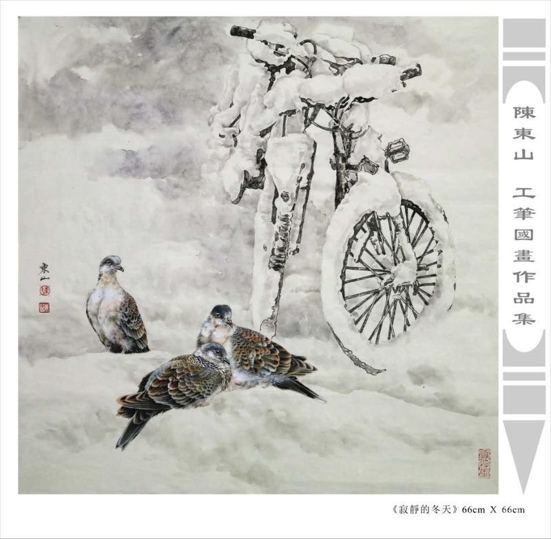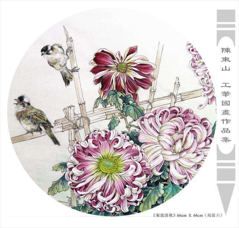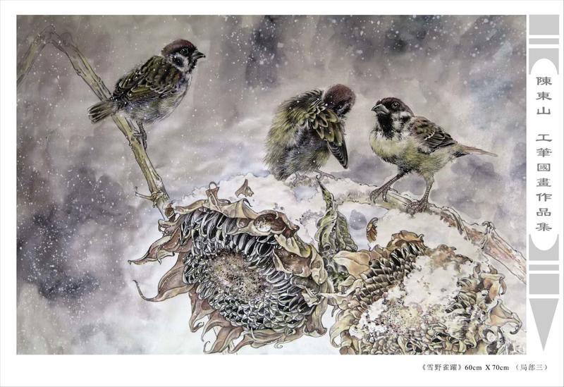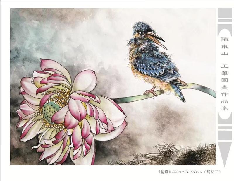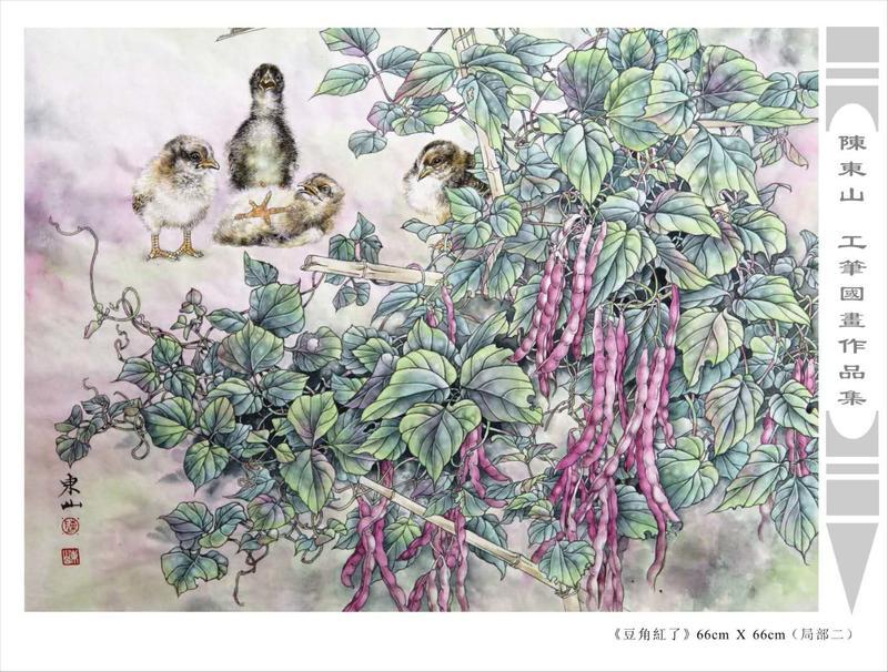 藝術簡歷 陳東山,1961年生於廣東,1980年定居香港, 自幼酷愛繪畫,居港後一直從事中國古代名畫的臨摹和研究工作,經過30多年的探索、磨練。打下堅實的繪畫基礎,終成今日之新風格。陳擅長工筆花鳥,畫風獨特。功力深厚及富有感染力。其作品非常强調物與物之間的相互呼應。雖然只是鵝鴨、雀鴿、蜂蝶又或是竹菊、荷莆、草石,但是在他筆下,每事每物都經過精心的構思,不僅強調其自身的某一特徵,更強調兩者之間在表現瞬間狀態時的整體呼應,因而令他的作品充滿意趣。