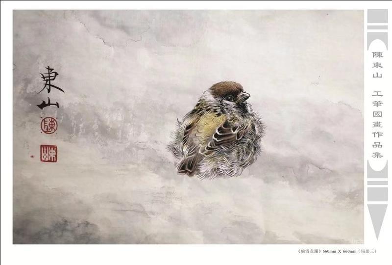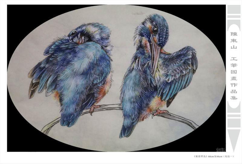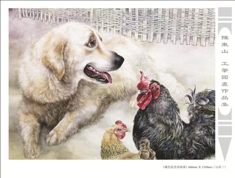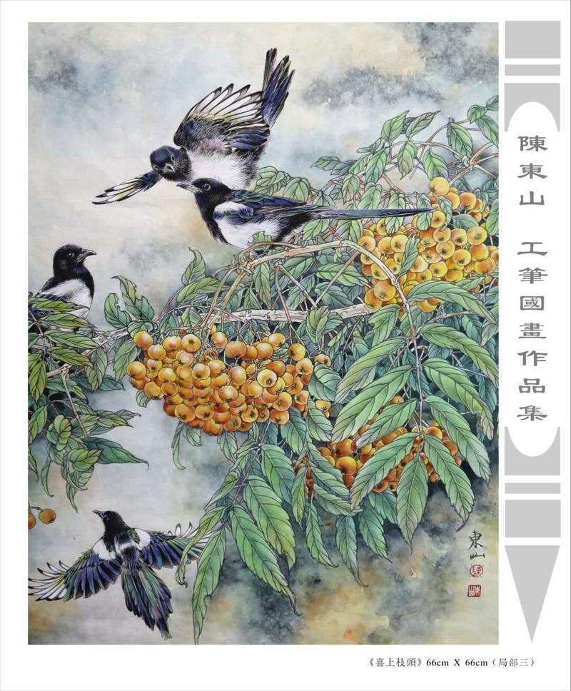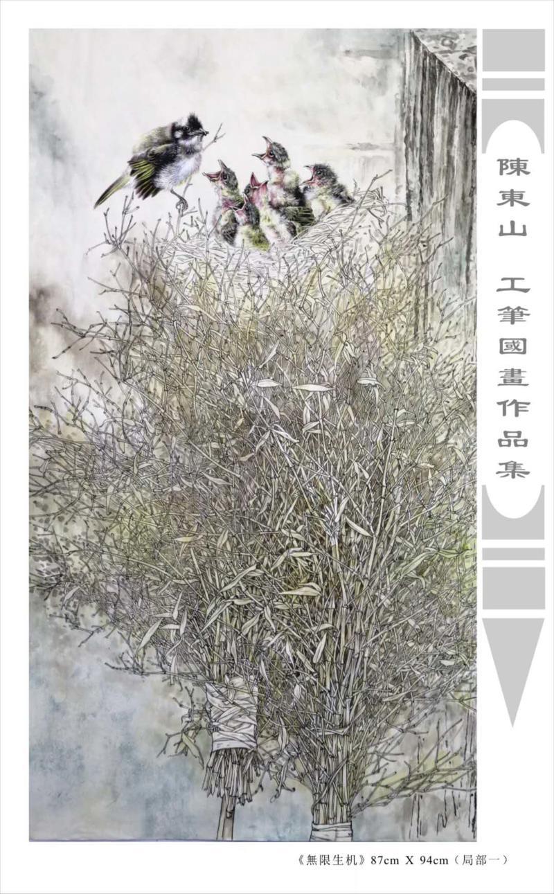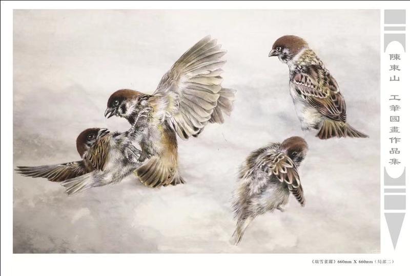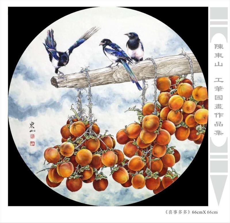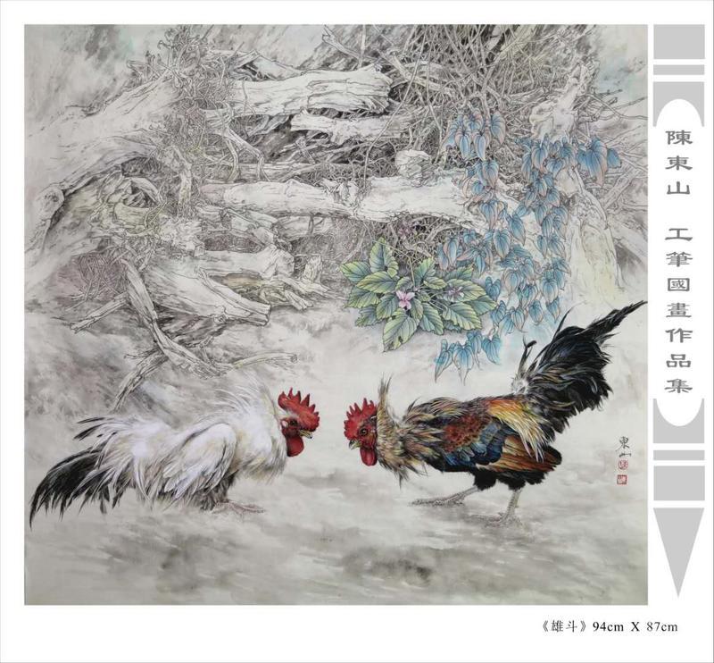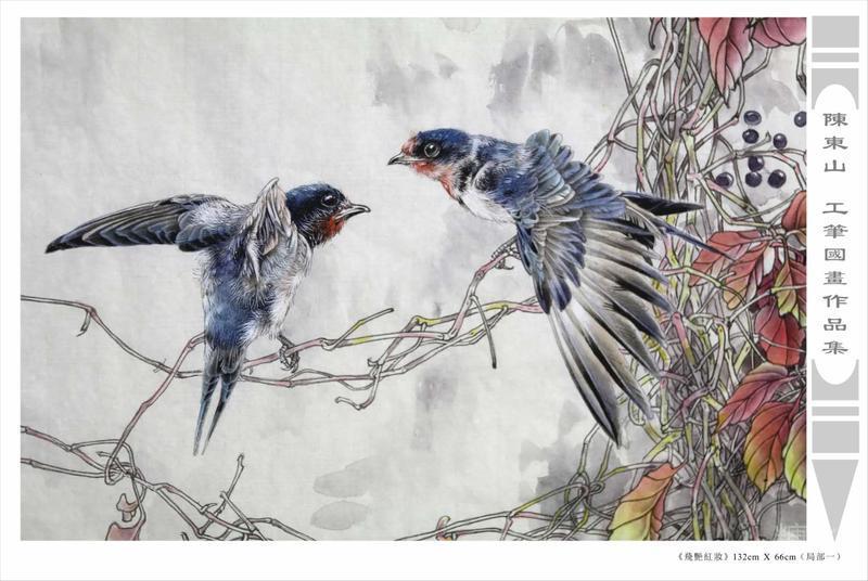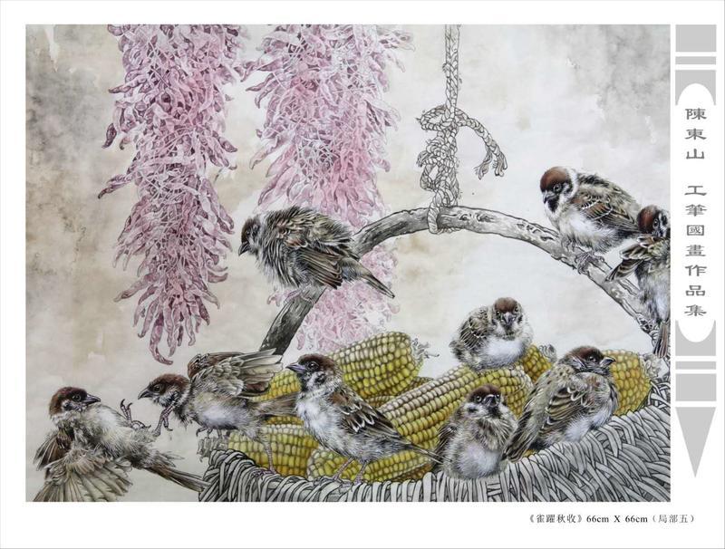 藝術簡歷 陳東山,1961年生於廣東,1980年定居香港, 自幼酷愛繪畫,居港後一直從事中國古代名畫的臨摹和研究工作,經過30多年的探索、磨練。打下堅實的繪畫基礎,終成今日之新風格。陳擅長工筆花鳥,畫風獨特。功力深厚及富有感染力。其作品非常强調物與物之間的相互呼應。雖然只是鵝鴨、雀鴿、蜂蝶又或是竹菊、荷莆、草石,但是在他筆下,每事每物都經過精心的構思,不僅強調其自身的某一特徵,更強調兩者之間在表現瞬間狀態時的整體呼應,因而令他的作品充滿意趣。