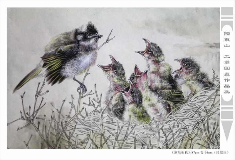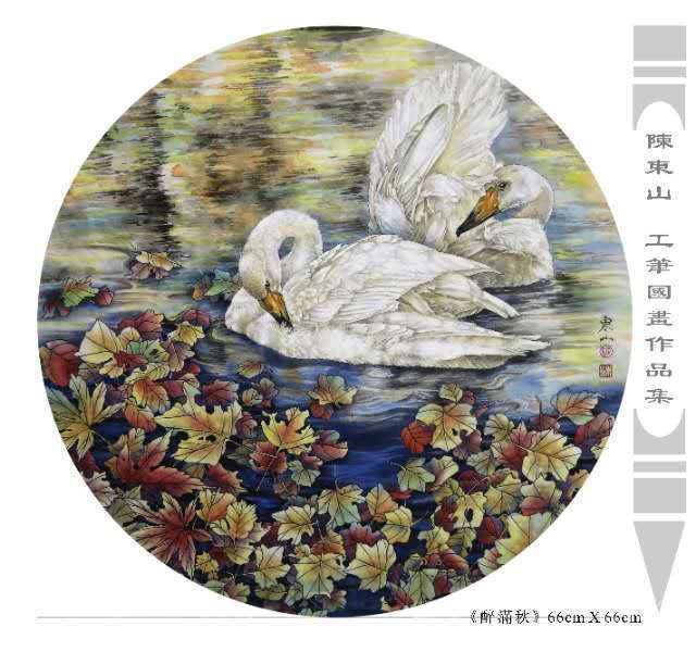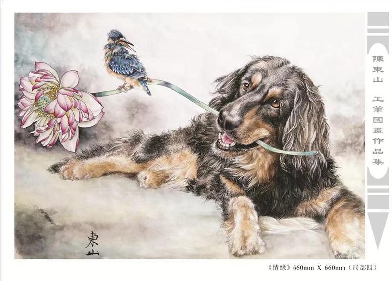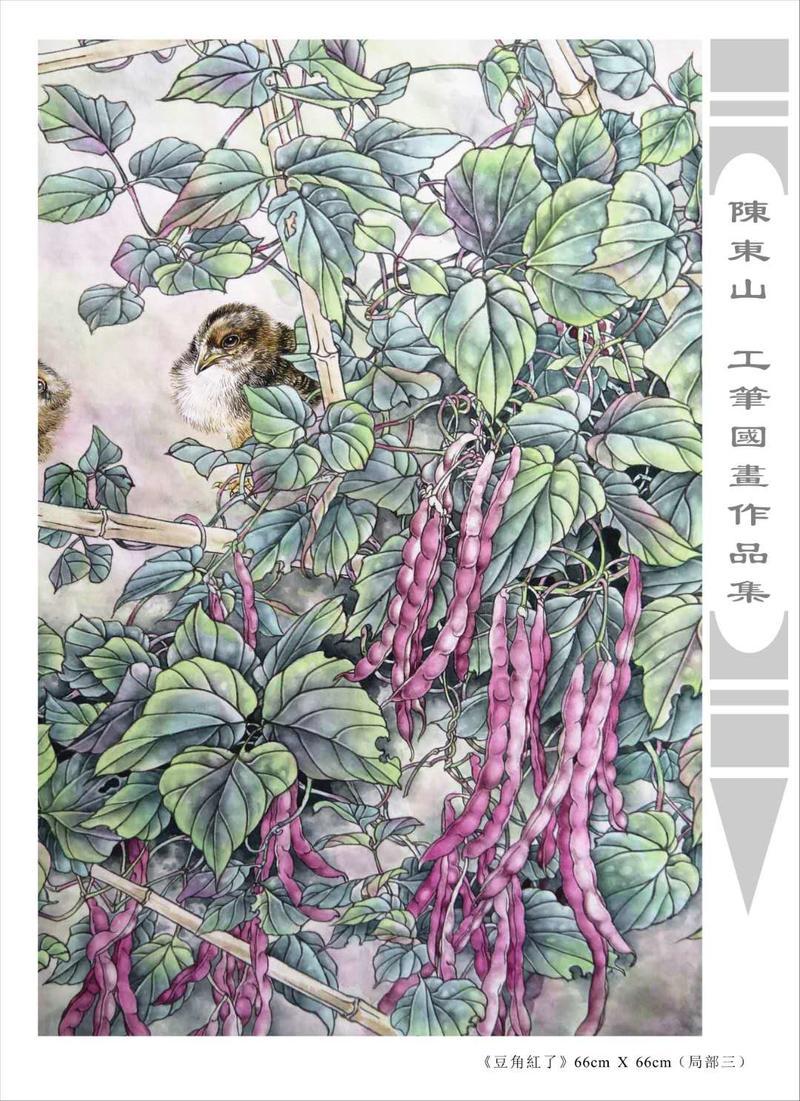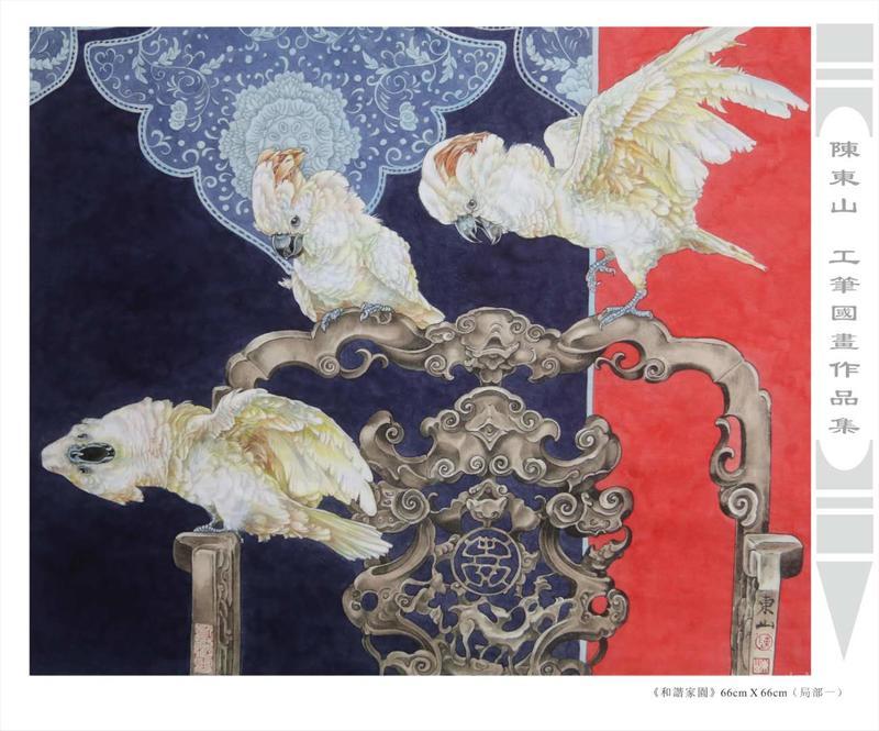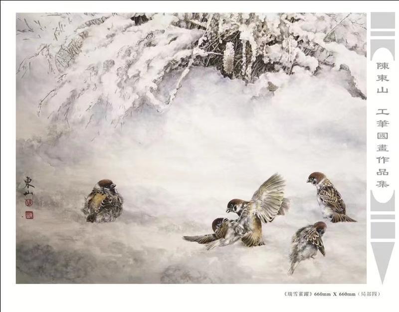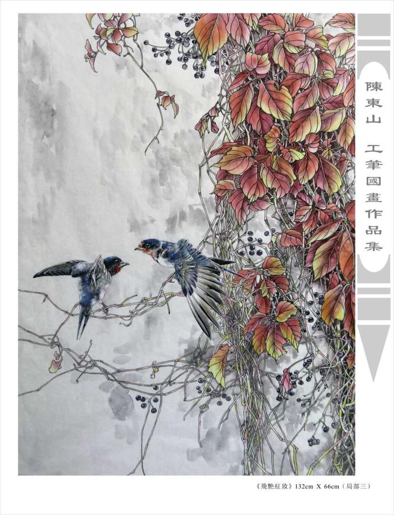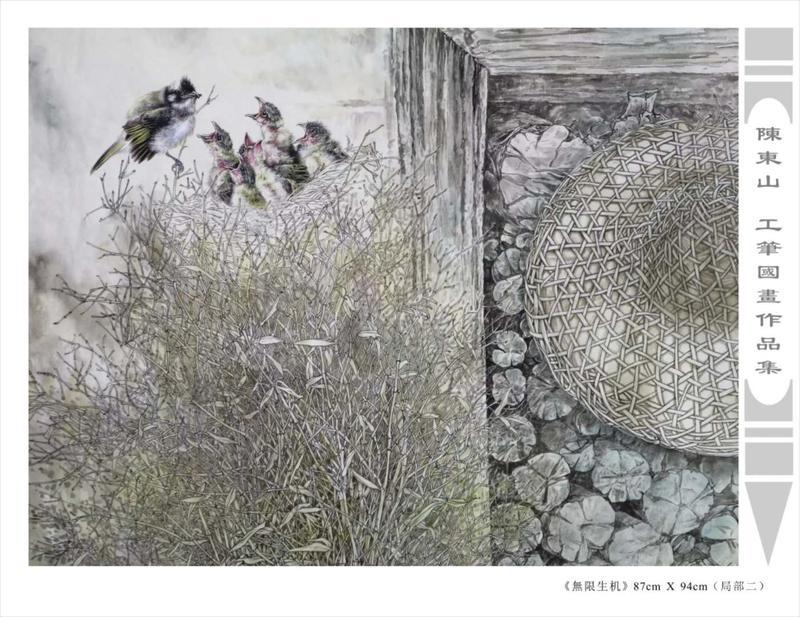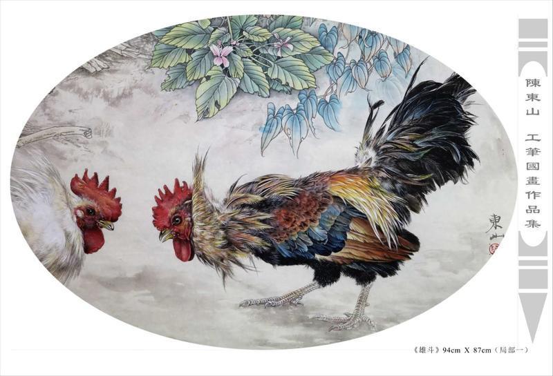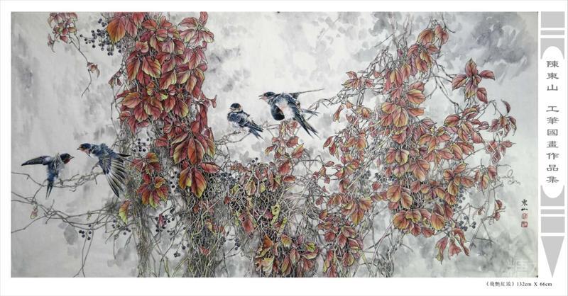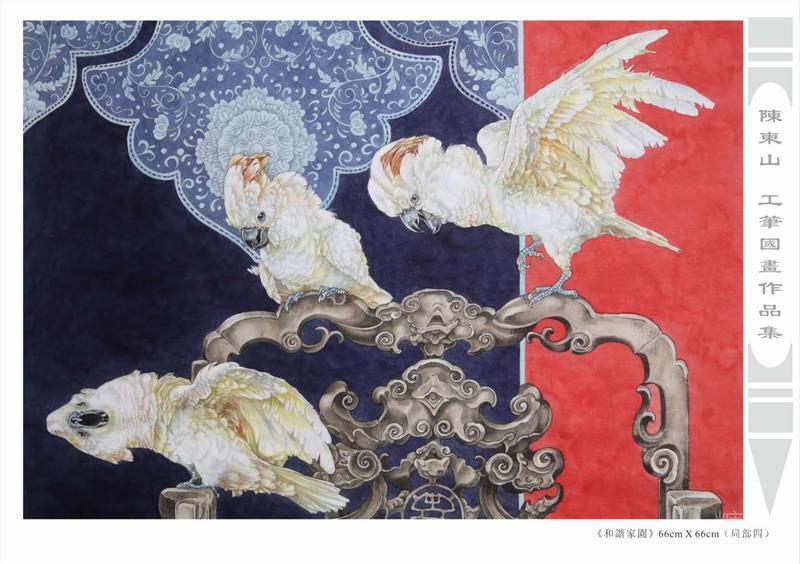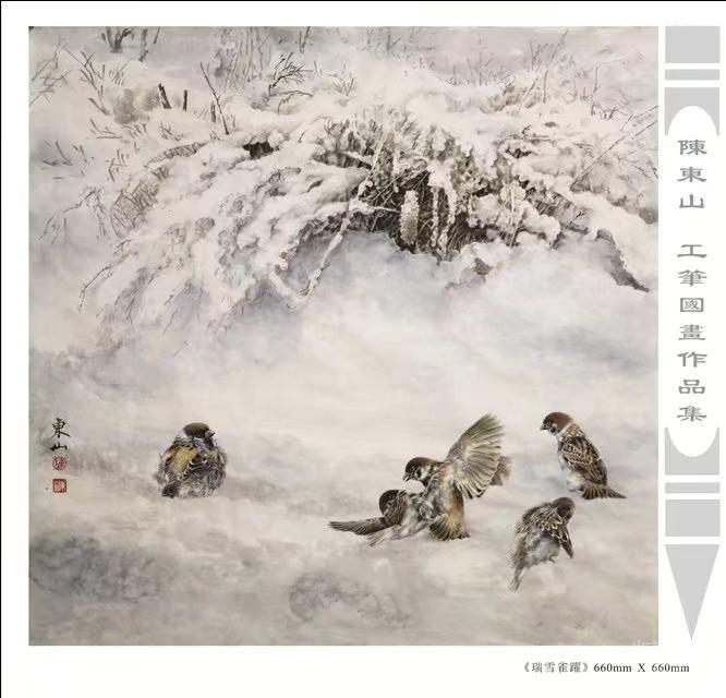 藝術簡歷 陳東山,1961年生於廣東,1980年定居香港, 自幼酷愛繪畫,居港後一直從事中國古代名畫的臨摹和研究工作,經過30多年的探索、磨練。打下堅實的繪畫基礎,終成今日之新風格。陳擅長工筆花鳥,畫風獨特。功力深厚及富有感染力。其作品非常强調物與物之間的相互呼應。雖然只是鵝鴨、雀鴿、蜂蝶又或是竹菊、荷莆、草石,但是在他筆下,每事每物都經過精心的構思,不僅強調其自身的某一特徵,更強調兩者之間在表現瞬間狀態時的整體呼應,因而令他的作品充滿意趣。