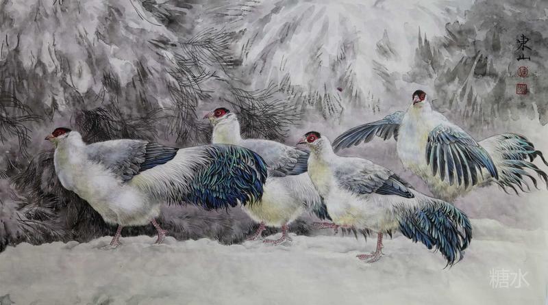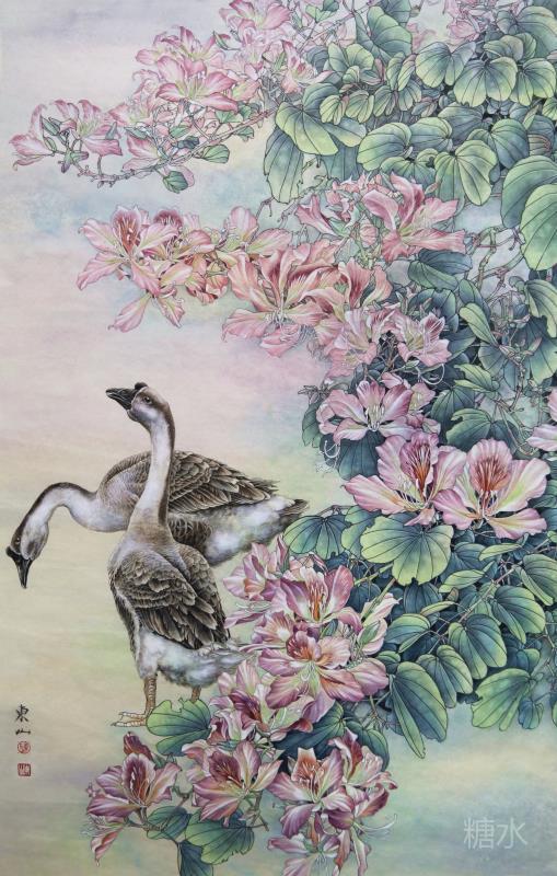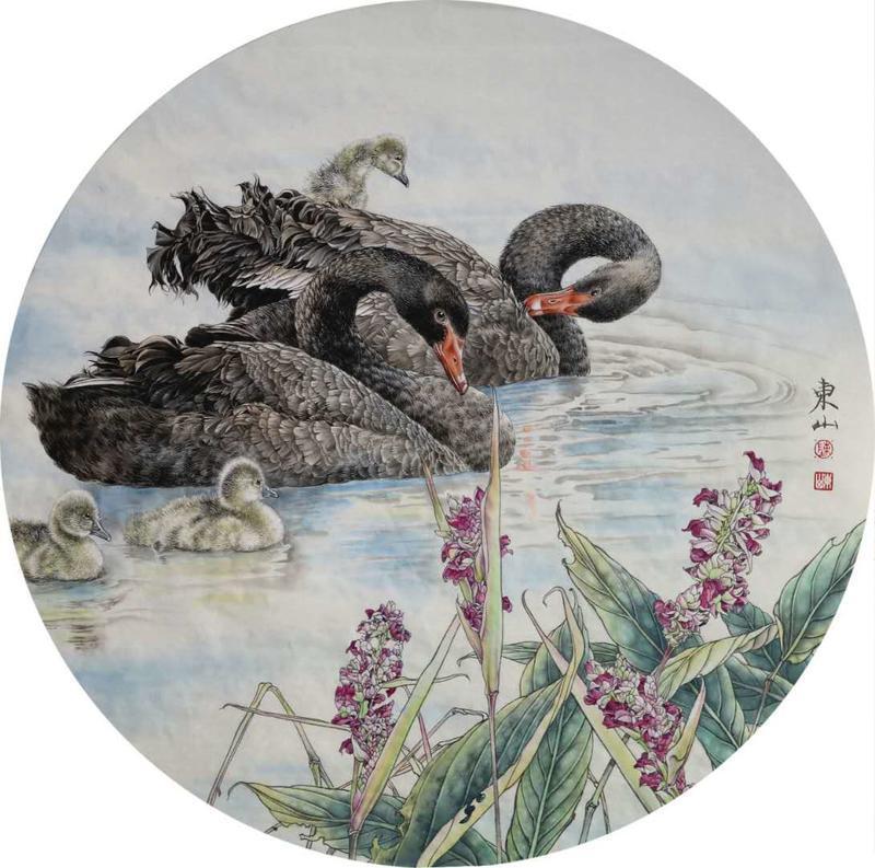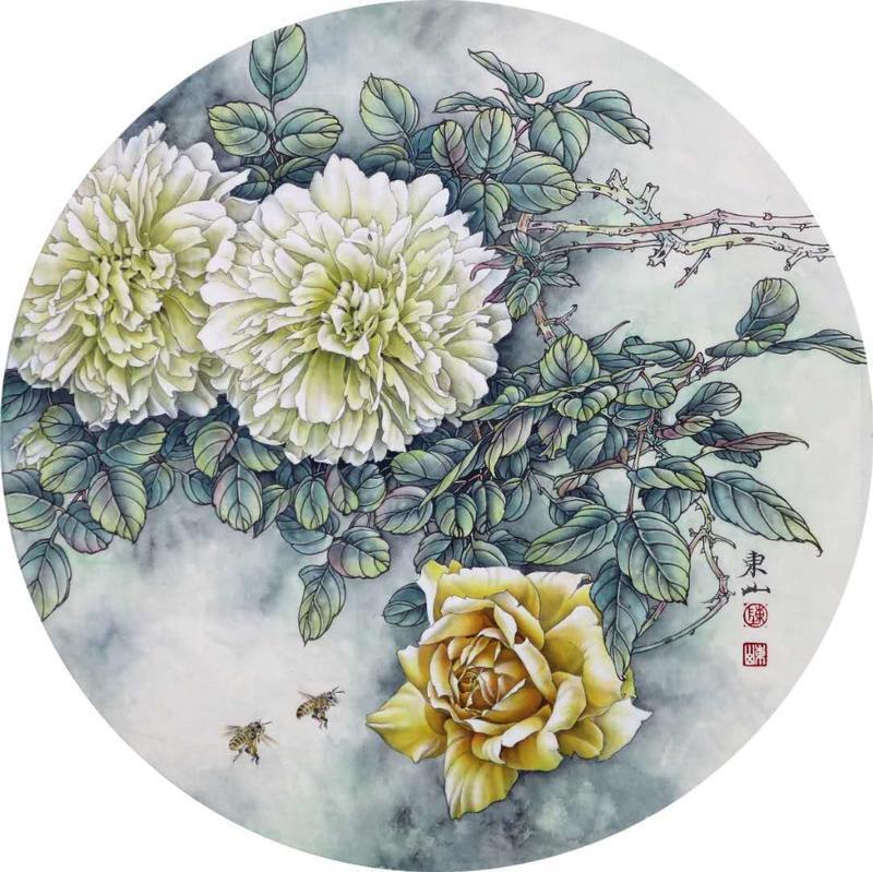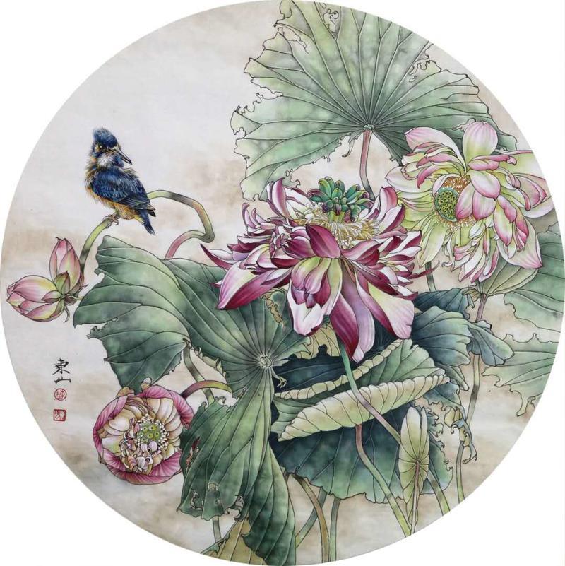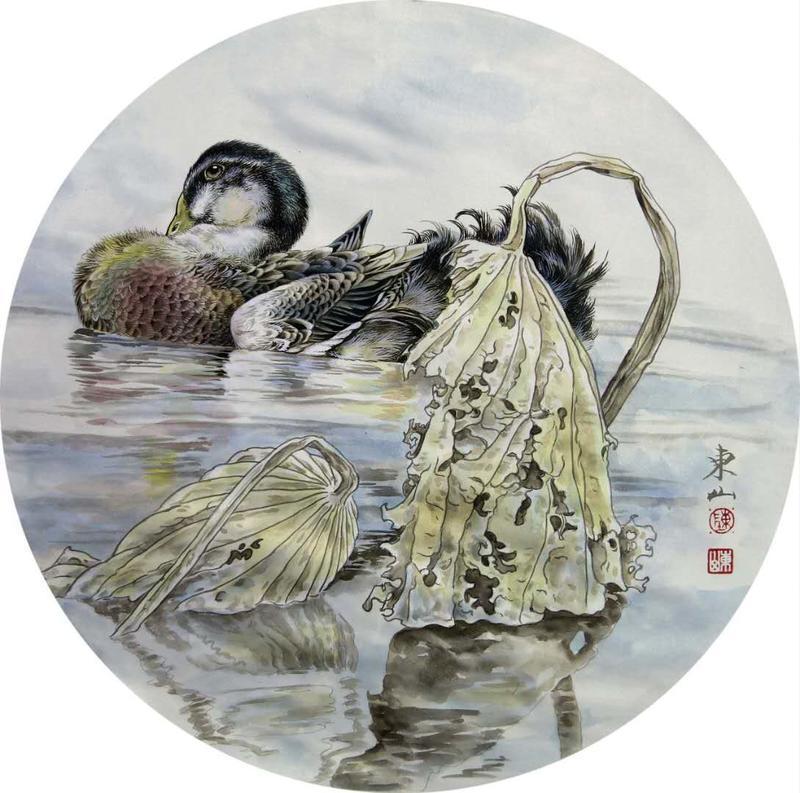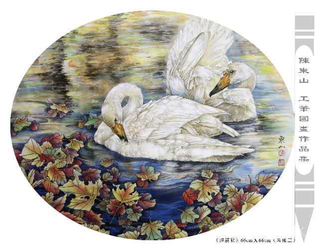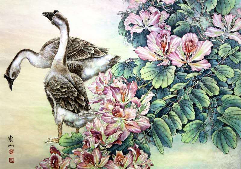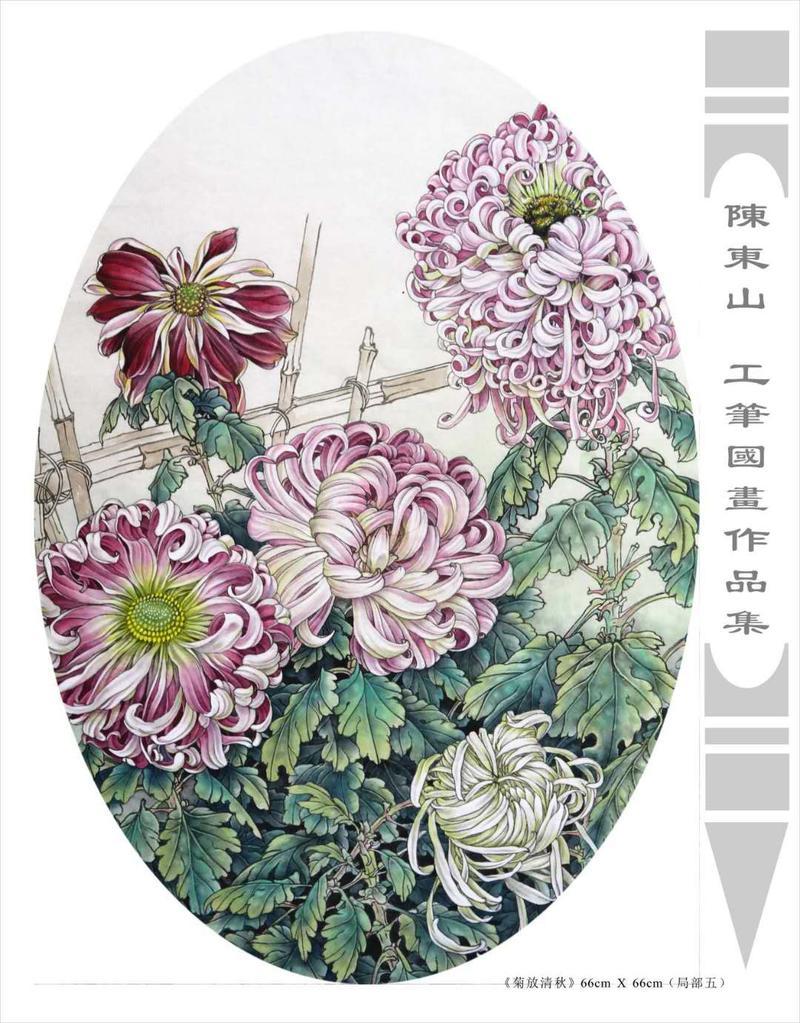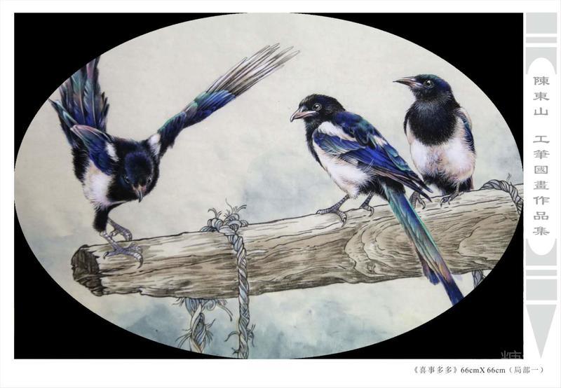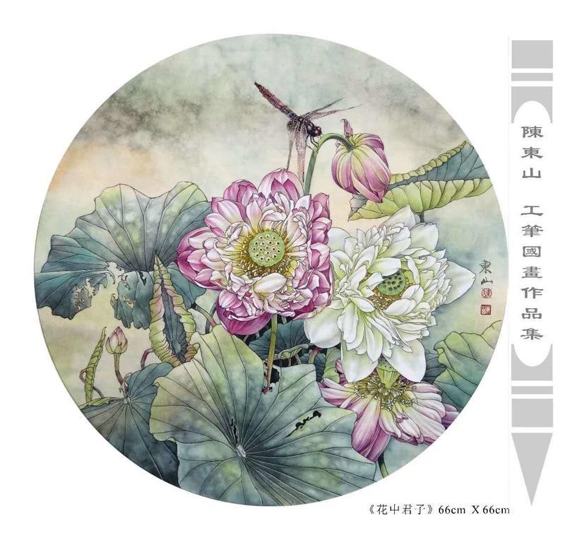 藝術簡歷 陳東山,1961年生於廣東,1980年定居香港, 自幼酷愛繪畫,居港後一直從事中國古代名畫的臨摹和研究工作,經過30多年的探索、磨練。打下堅實的繪畫基礎,終成今日之新風格。陳擅長工筆花鳥,畫風獨特。功力深厚及富有感染力。其作品非常强調物與物之間的相互呼應。雖然只是鵝鴨、雀鴿、蜂蝶又或是竹菊、荷莆、草石,但是在他筆下,每事每物都經過精心的構思,不僅強調其自身的某一特徵,更強調兩者之間在表現瞬間狀態時的整體呼應,因而令他的作品充滿意趣。