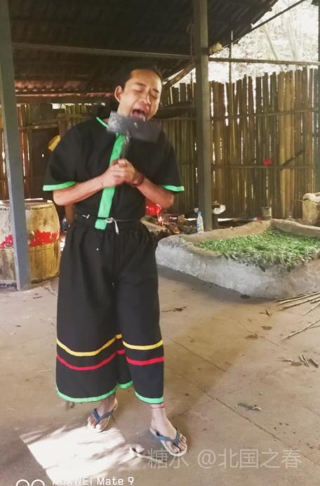 热带雨林谷中克木人在表演利刃割舌,毫无痕迹