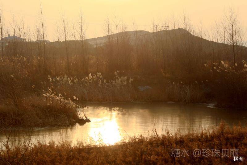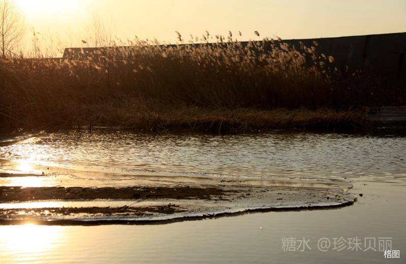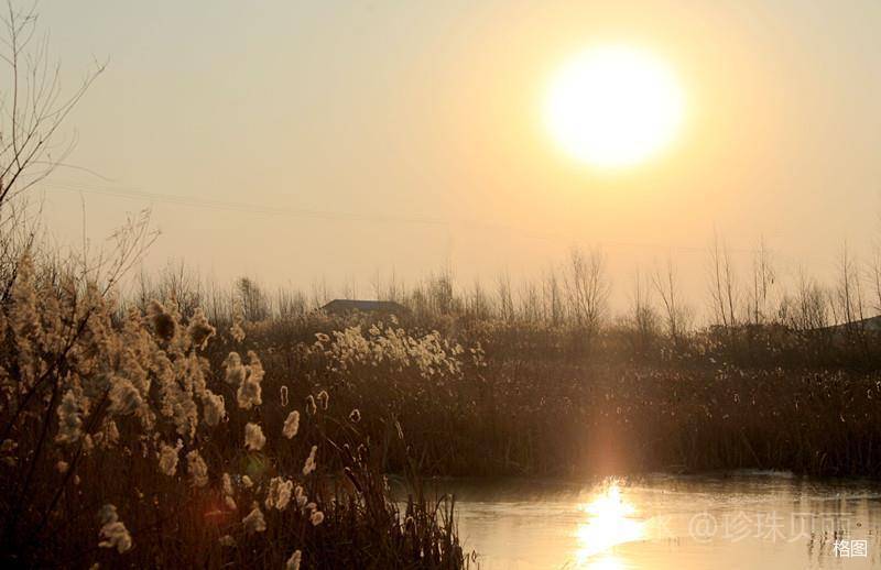 《松花江雪》 夕阳红 松花江水冰封花, 暖阳照耀江映霞, 风吹芦苇絮飘舞, 冬日江景摄影佳。