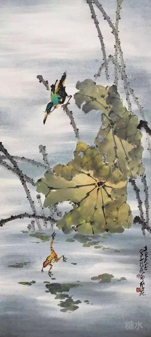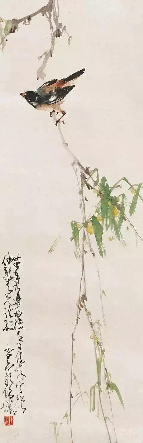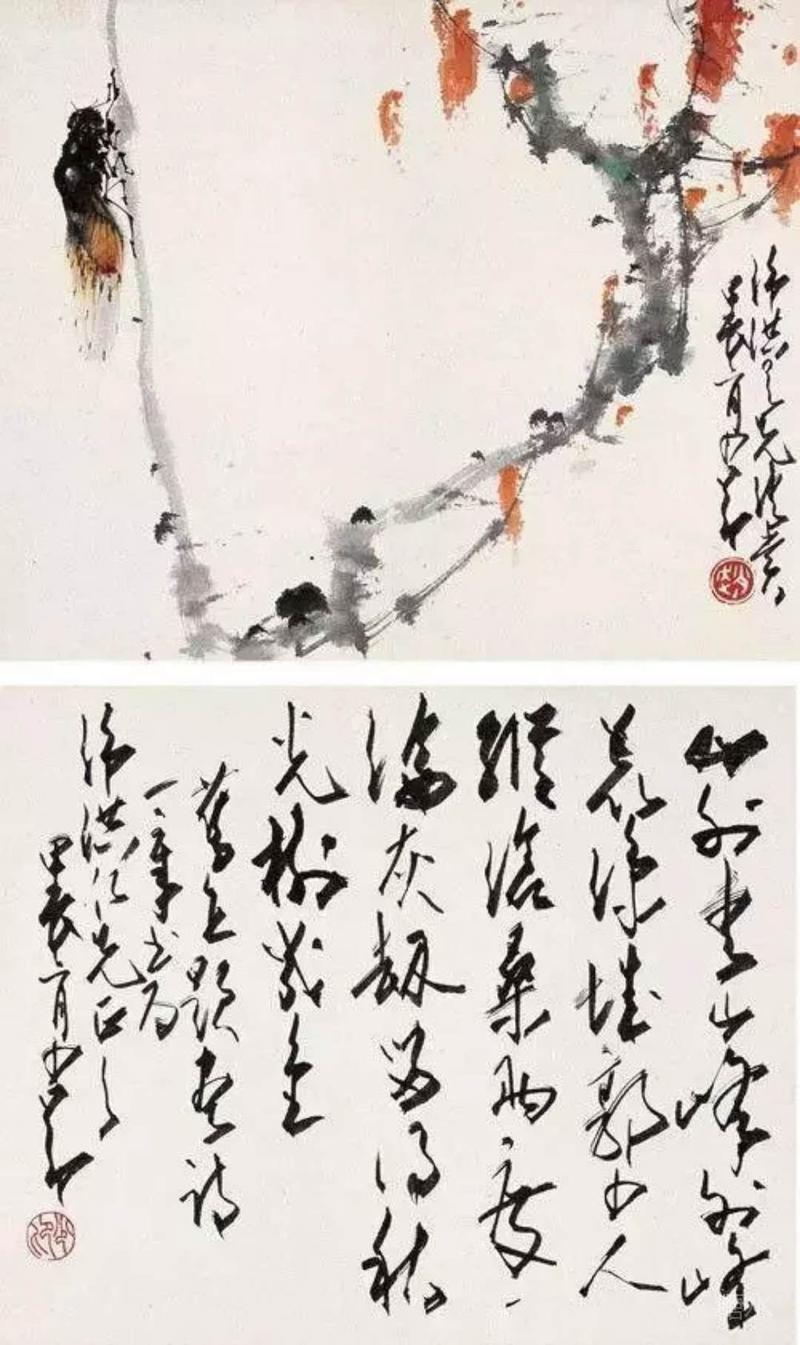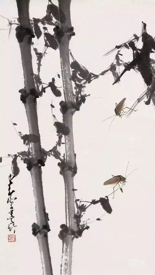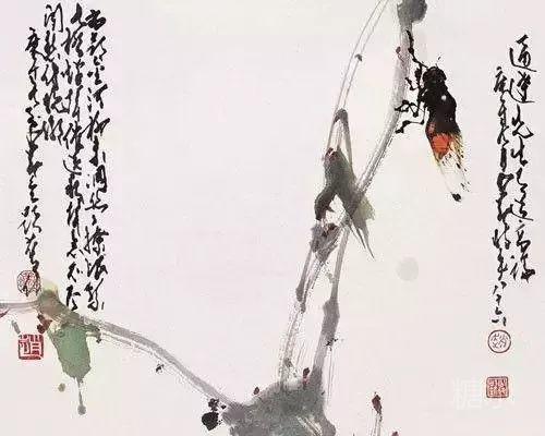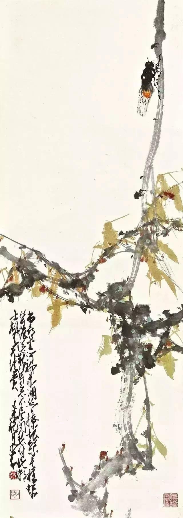 《蝉曳声过别枝》显示了他对蝉的绘画达到一个新境界,他以极淡的笔墨画出叶和柳枝,因而把飞着的草虫突出了,可说是手法独造。