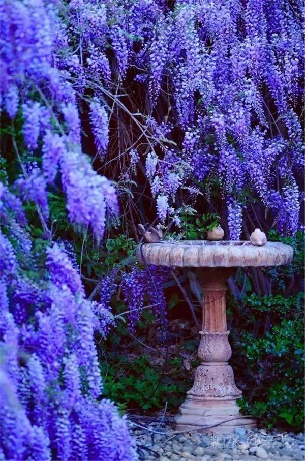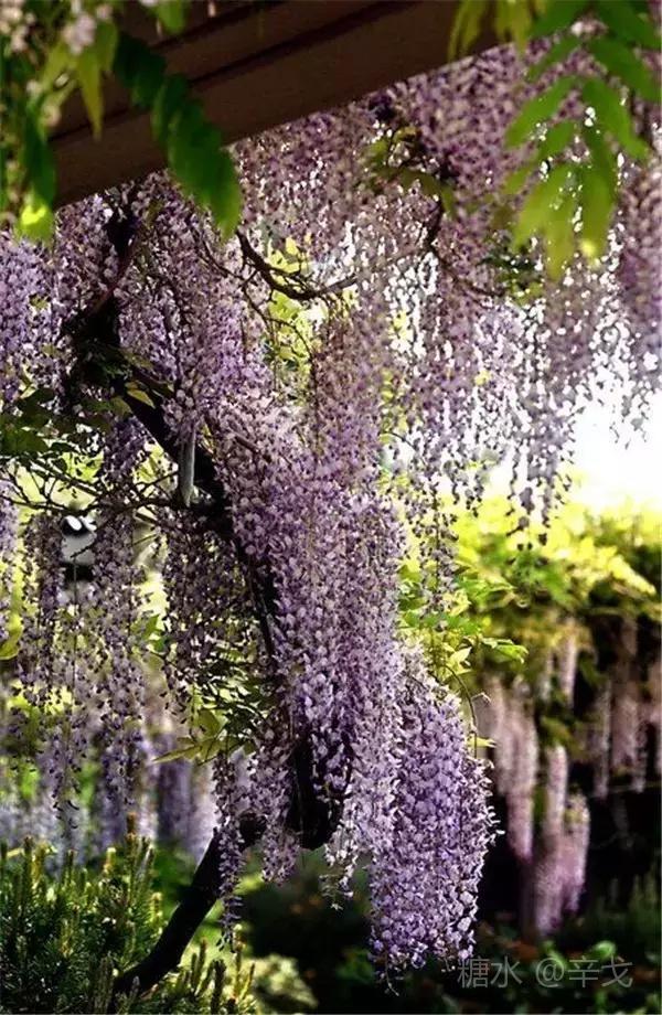 满目繁华如梦如幻, 吟唱一行玲珑小诗, 沉陷神秘的紫藤花雨。
