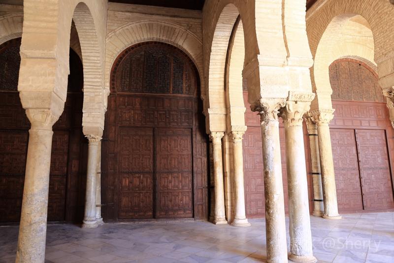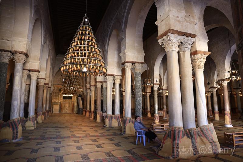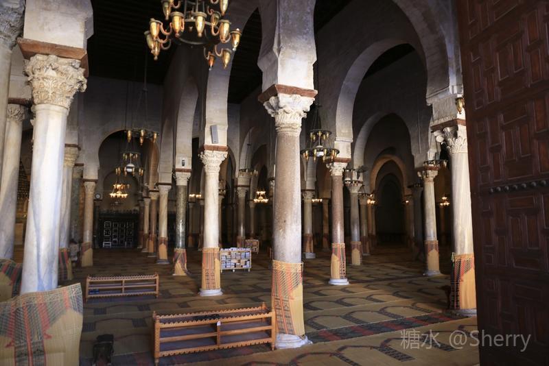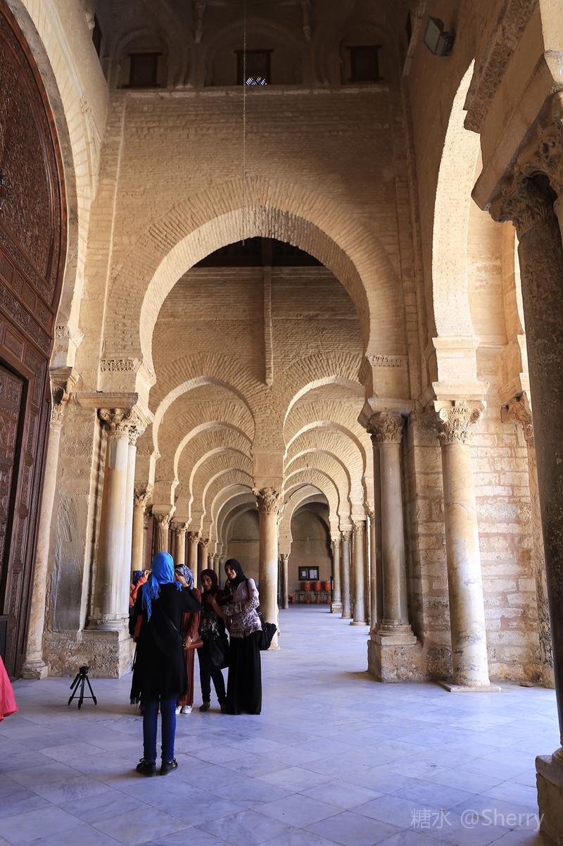当天无法入殿参观,无缘目睹介绍中的“精制梧桐大讲坛、浮雕、伊拉克彩色陶瓷板”等精品,但见识了阿拉伯人巧妙利用垫高或加塞的方式使“长短不齐胖瘦不一”的各式罗马柱平稳地“撑起”清真寺。 阿拉伯人这种灵活多变的技巧和策略同样用在伊斯兰教在北非的传播和阿拉伯人与柏柏尔人的融合等方面并获得成功。