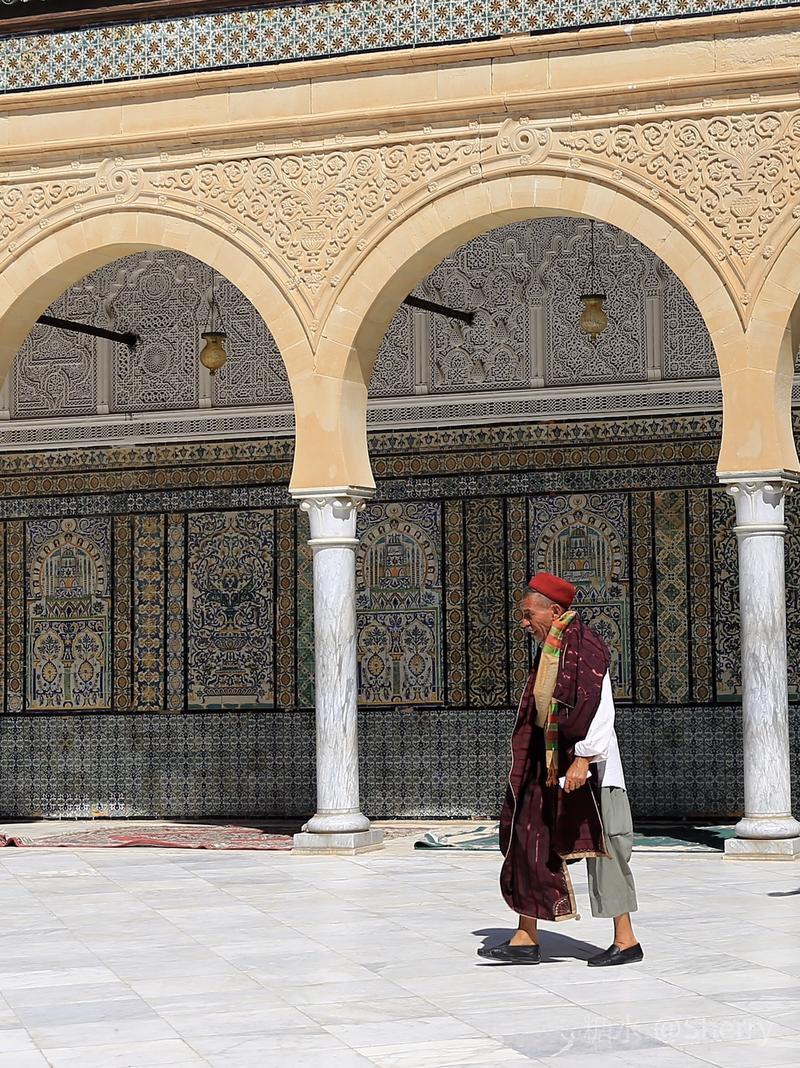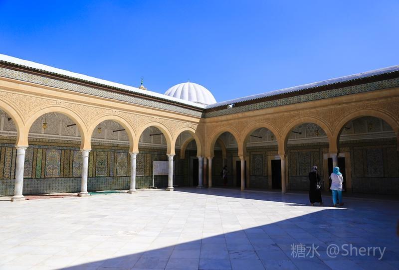 西迪.撒哈比陵墓(Sidi Sahbe Mausoleum), 也就是人们口中的“三根胡须清真寺”。 “据传伊斯兰圣人西迪撒哈比是先知穆罕默德的密友,7世纪从圣地麦加返回突尼斯后,不仅带回大量的经文,还带有三根先知的胡须。当地人在这位圣人去世后,为他修建了这所别致的陵墓”。