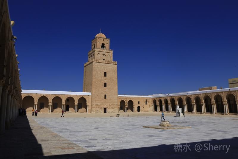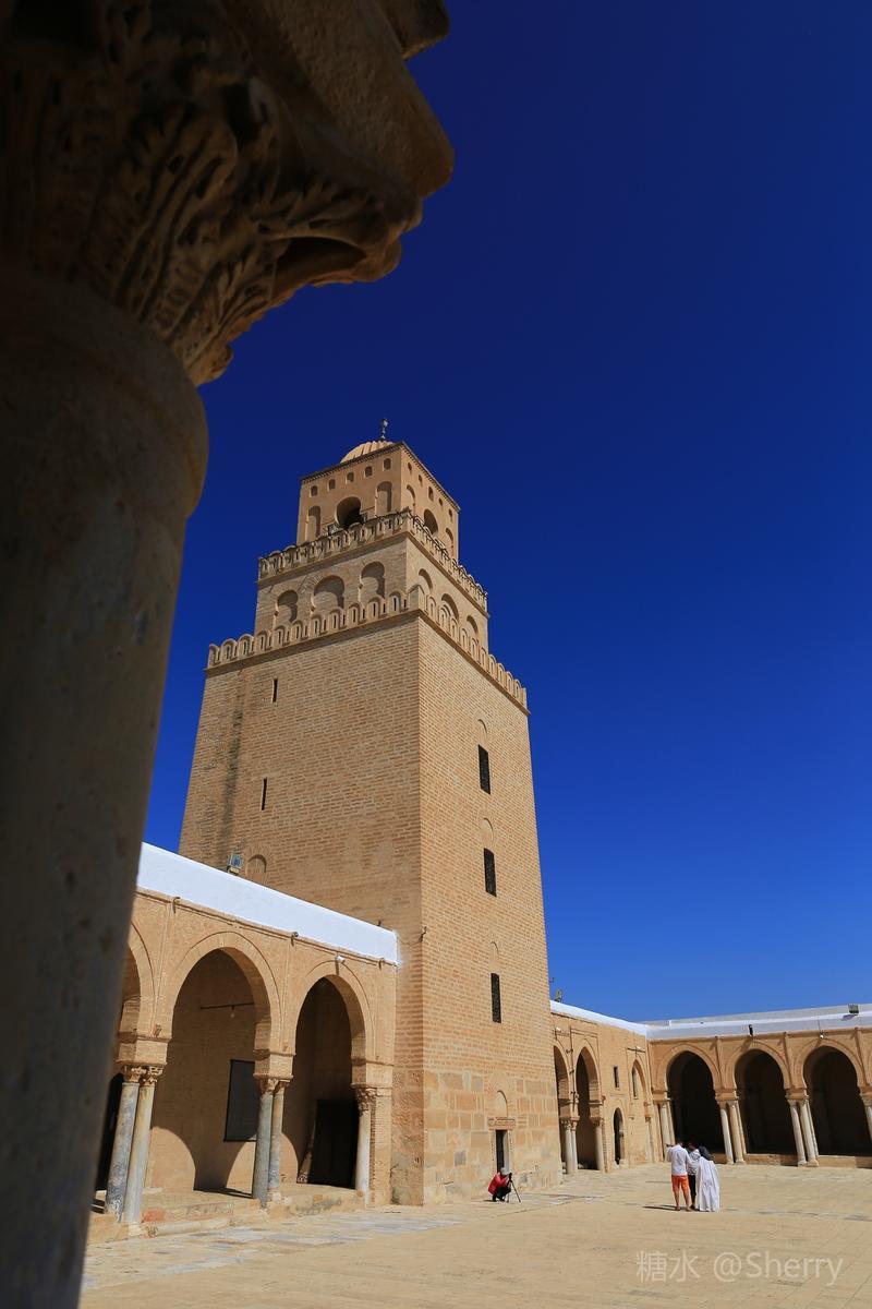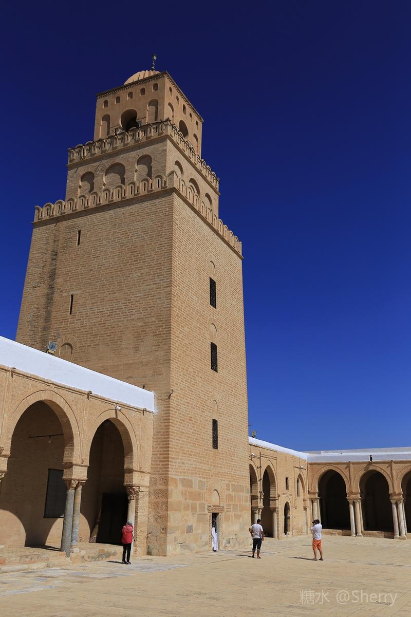 四方梯形宣礼尖塔三层结构高35米,是凯鲁万城最高建筑物。