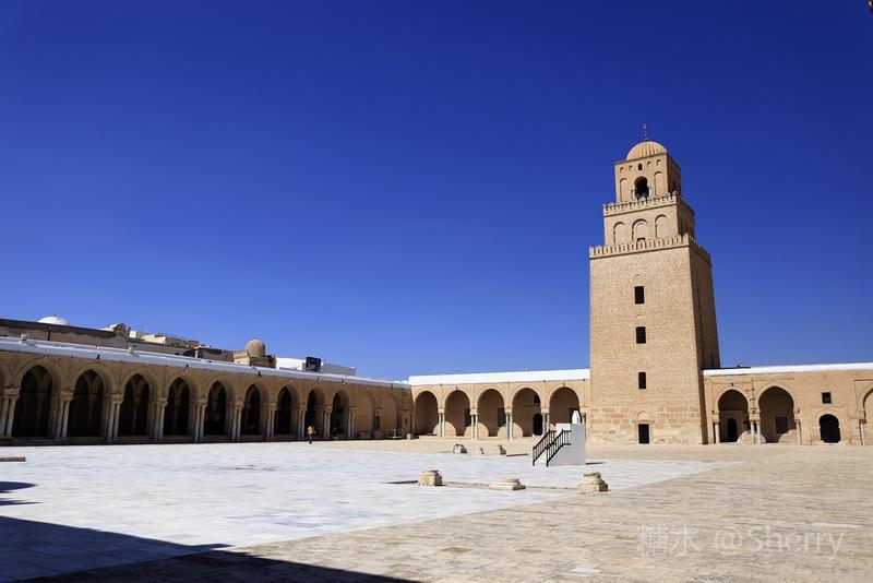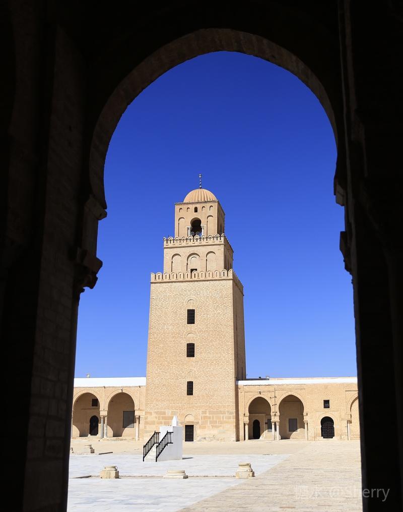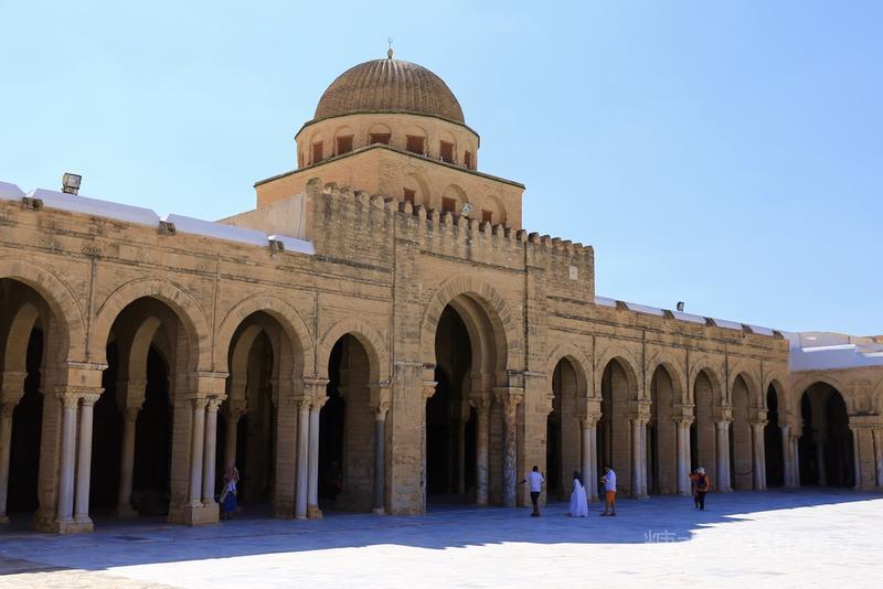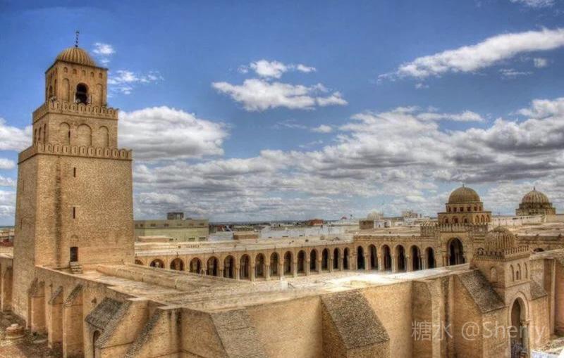 穆罕默德去世后,从第二任哈里发(Khalufa,意为继承者或代理人)奥马尔(Omar)开始,阿拉伯民族走上了对外扩张的道路。 MSL大军一手提刀一手高举《古兰经》挥师北上,用十年的时间先后攻克了东罗马拜占庭和波斯萨珊王朝,他们从叙利亚和埃及出发沿北非海滨向西进攻,并有计划地沿途建立“根据地”将阿拉伯人的力量集中起来,凯鲁万就是阿拉伯帝国向西扩张中的第一个军事基地。 公元670年,阿拉伯将军奥克巴(Uqba)在突尼斯建城凯鲁万,现存的奥克巴清真寺是建城同期的建筑并以将军名字命名,这是伊斯兰教在北非的第一座大清真寺。(全景图下载自网络)
