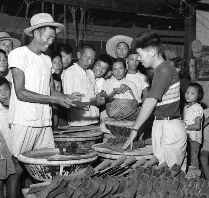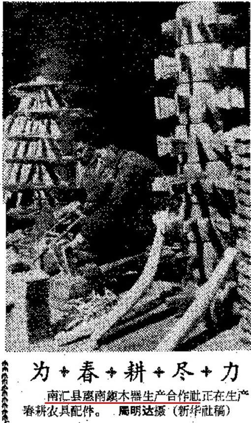 新华社1961年9月19日报道;上海市南汇县惠南人民公社铁业生产合作社,生产质量良好的小农具,支援“三秋”。铁业生产合作社还设立了小农具门市部,方便社员选购。