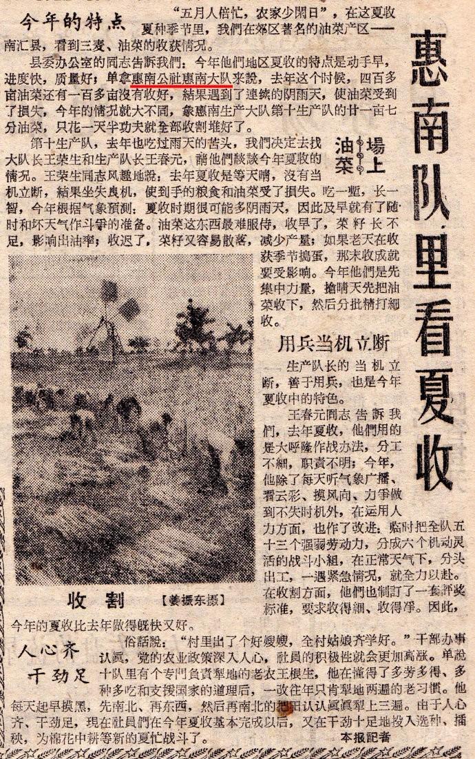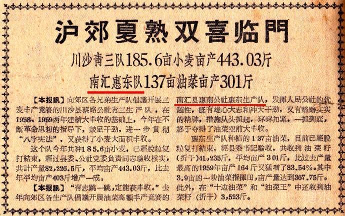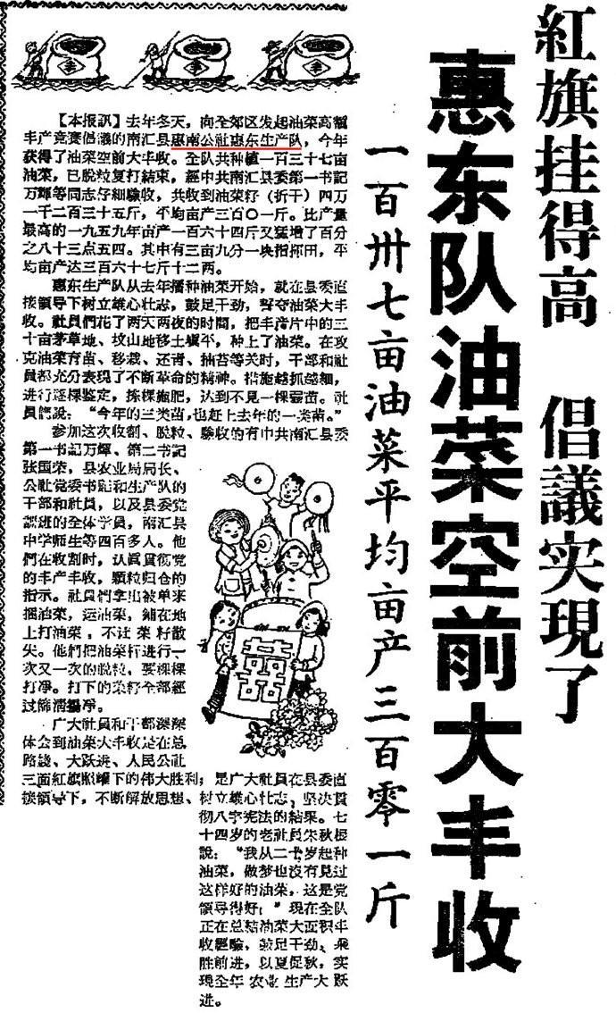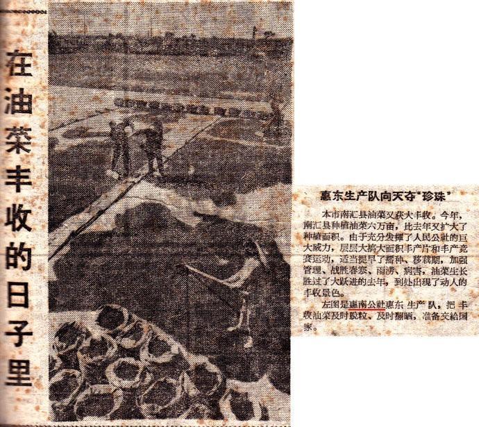 选自1960年6月6日《新民晚报》 新华社1960年6月7日报道:南汇县油菜大面积丰收。