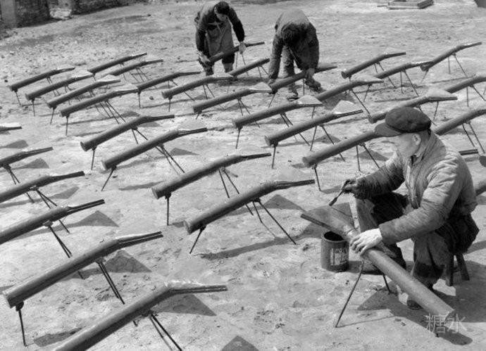 图为惠南人民公社惠中机械厂生产的大批“火炮喷粉器”。