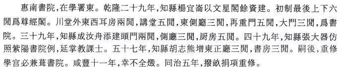 图为光绪五年(1879年)惠南书院图,选自选自光绪五年《南汇县志》 图为光绪五年(1879年)《南汇县志》对惠南书院的介绍,选自光绪五年《南汇县志》