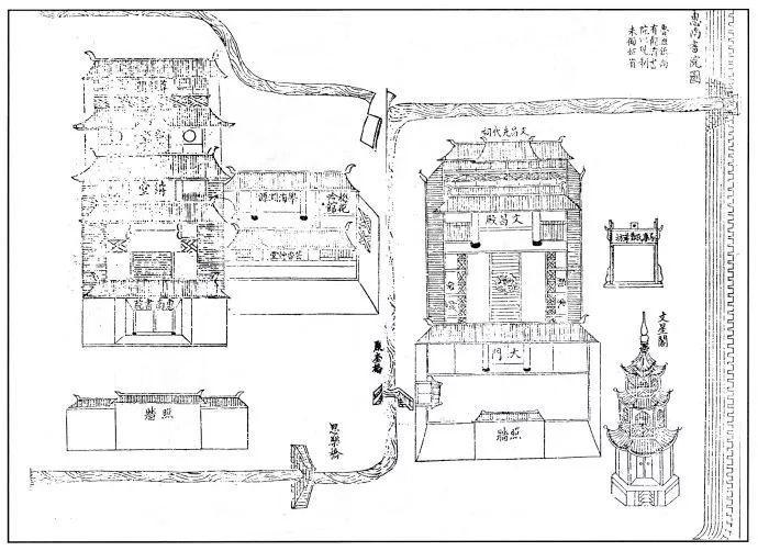 图为光绪五年(1879年)惠南书院图,选自选自光绪五年《南汇县志》