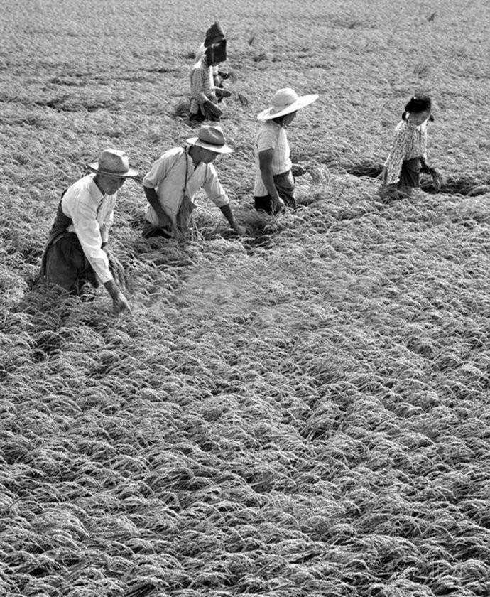 选自1965年4月19日《新民晚报》 新华社1965年9月11日报道:上海市郊南汇县惠南人民公社社员精选水稻良种,为1966年增产粮食作好准备。