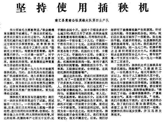 选自1966年3月16日《杭州日报》 新华社1973年6月1日报道:改革农机具,使在生产中发挥更大效益。上海南汇县惠南公社农机厂制成了为手扶耕耘机配套的深耕犂,使手扶耕耘机在生产中发挥了更大作用。