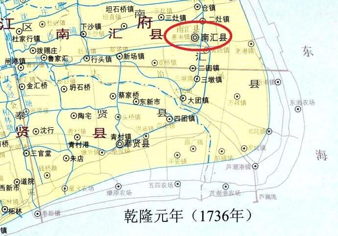 图为吴越显德元年(北宋建朝前6年)地图,红圈处就是现在惠南镇中心。选自《上海历史地图集》 南宋乾道八年(1172年)华亭知县邱崇筑里护塘,今惠南地区成陆。