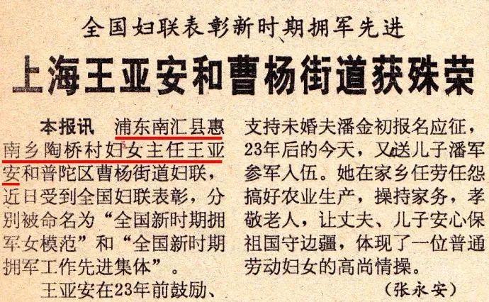 惠南是一个高度重视拥军优属乡镇,曾多次被评为“上海市拥军优属模范镇”。 1993年,惠南乡陶桥村妇女主任王亚安被全国妇联命名为全国新时期拥军模范。