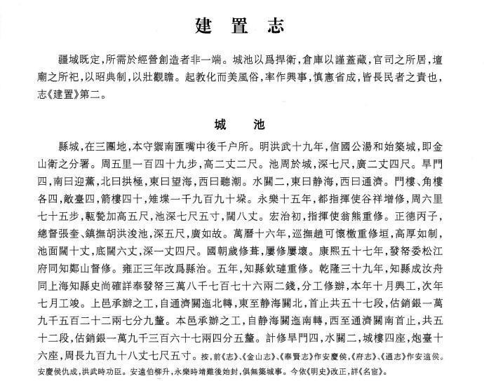 图为南汇城修建介绍(选自雍正九年《雍正分建南汇县志》)