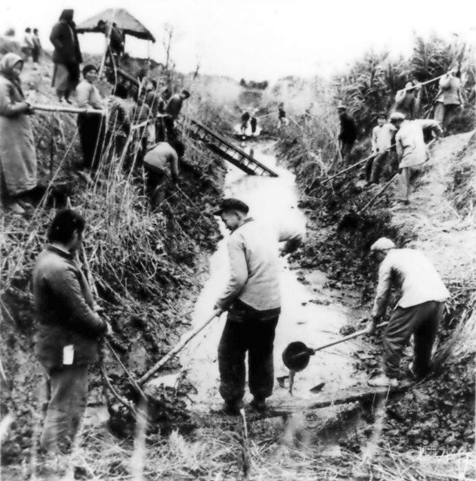 选自1963年3月3日《新民晚报》为了预防旱涝灾害,惠南公社社员利用农闲时开挖河道。