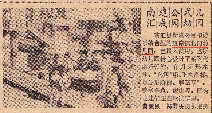 选自1984年9月6日《文汇报》 1986年6月,惠南镇建成公园式幼儿园北门幼儿园。