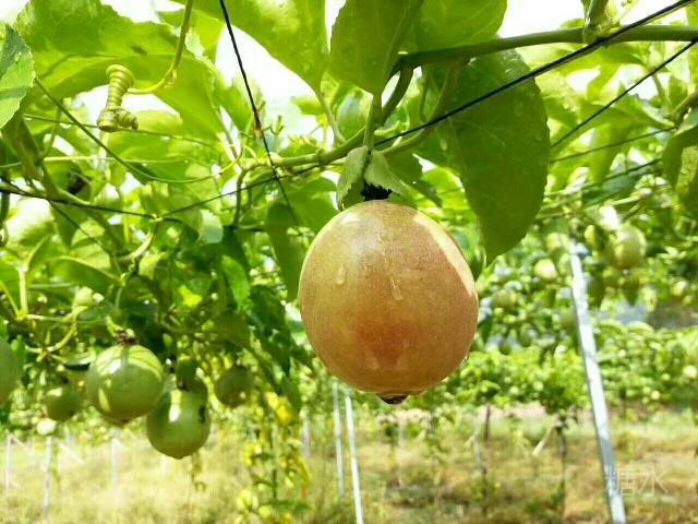 园主非常热情,在果园现场给我们解说黄金百香果价值:其含丰富的维生素C,胡萝卜素,氨基酸,能够促进新陈代谢,养颜美容,延缓衰老,低热量,增加饱感,减肥利器…… 果实未成熟是青色,越熟越金黄,越熟越甜,最佳是黄到皮皱,甜度更高。 园主再三的请我们现场品尝果实,我们再三的推却,等过完称再品尝。