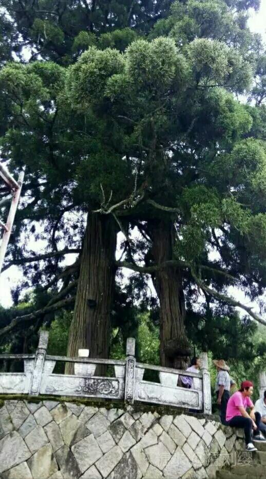 浦源村中设有一古老的“鱼冢”,在图中两棵大树后面,没有人吃溪中的鲤鱼,鲤鱼病老死了就投入鱼冢中。