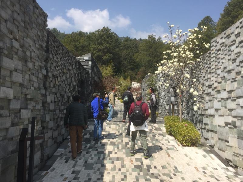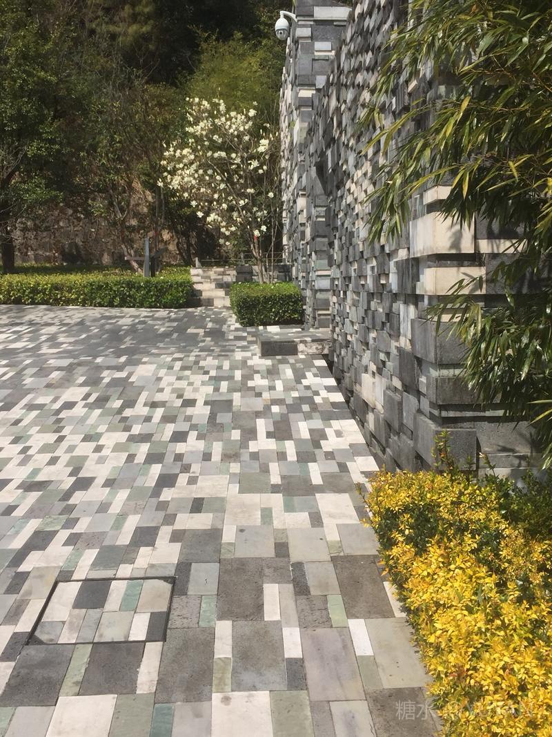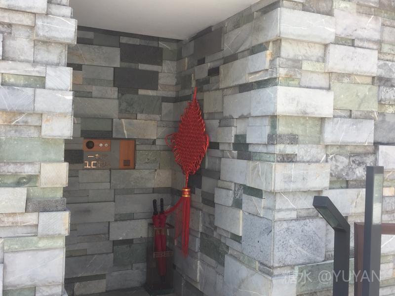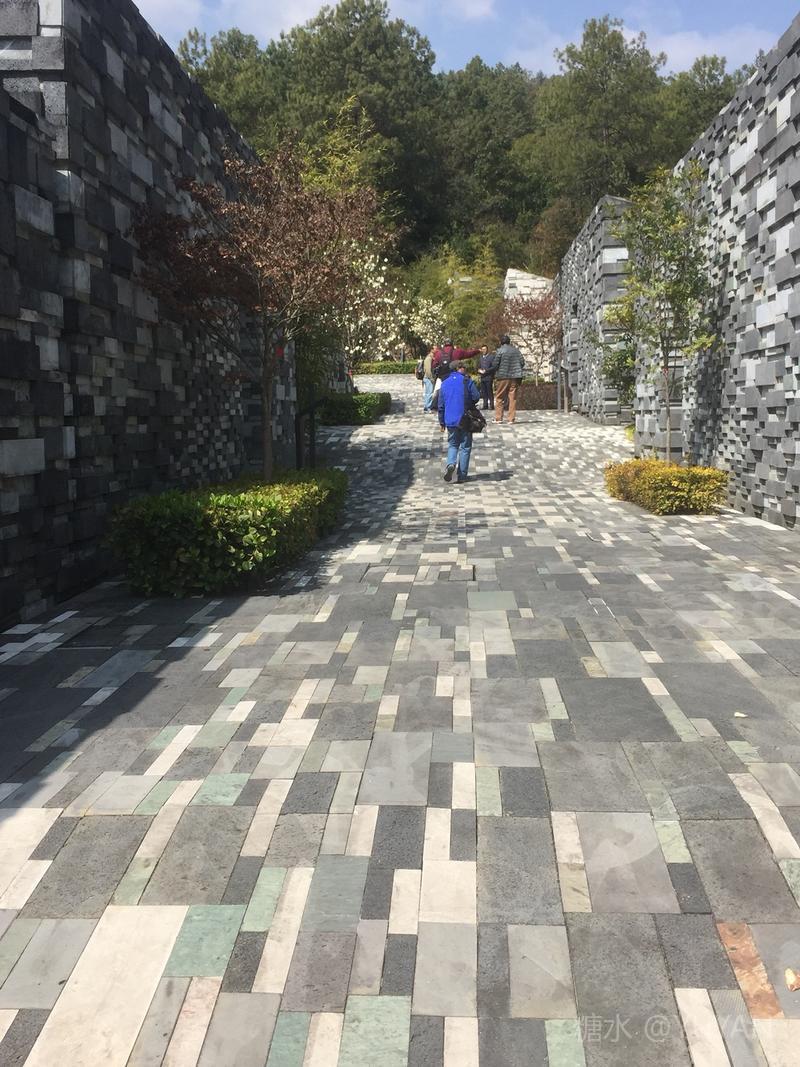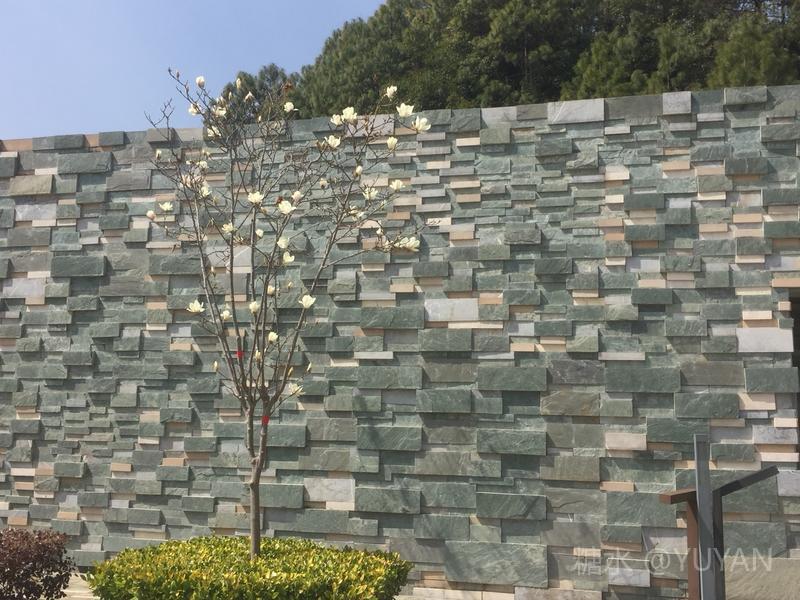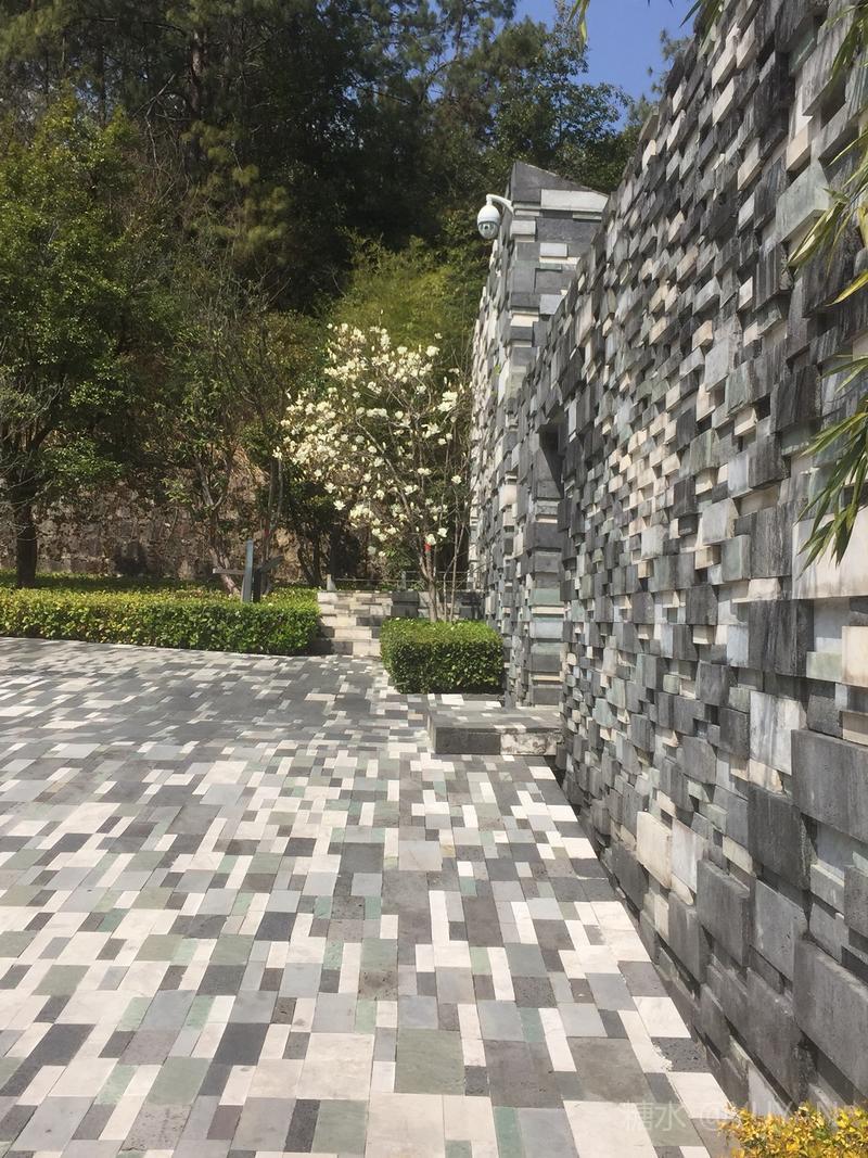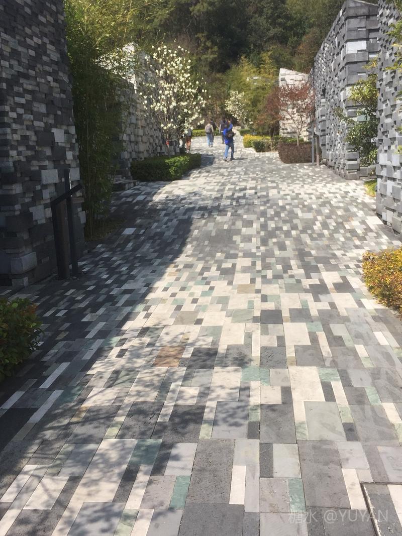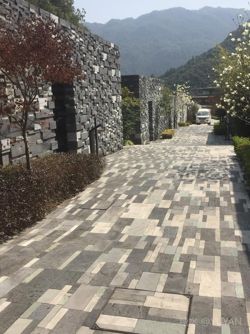 在进行贴面的时候为了形成各自不同的墙体,隈研吾设计出了大小、厚薄完全不同的6种石材,35种规格,210种石块。以便进行色彩错落、嵌合凹凸的搭配,整个工作细化到为每栋建筑每一面墙体的石料拼贴都出了详细的图纸,所以每一片石头纪温泉Villa度假酒店石块在施工的时候都进行了严谨的编号,最后才实现了“随便两平方米的地方都不会有重复的墙体”这种完美细节。