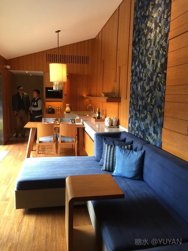 石头纪温泉Villa度假酒店的主要建筑群是以一层为主的独立Villa — 度假小屋为主。 其外观设计风格独特,甚至有些怪异。整个建筑一眼看去,可以说是让人感觉低矮单调,似乎是由一片片灰色石片堆积而成。入口处低窄,外墙不见任何窗子。 可是一进房间,只见大大的落地窗,睡房客厅围着一个小小的庭院,庭院里有着一个温泉池……让人感到身心一下子放松下来。 整个房间充满了一种精致的、舒适的、私密的、温馨的浪漫情调!