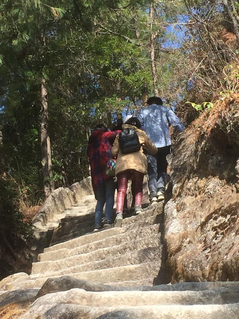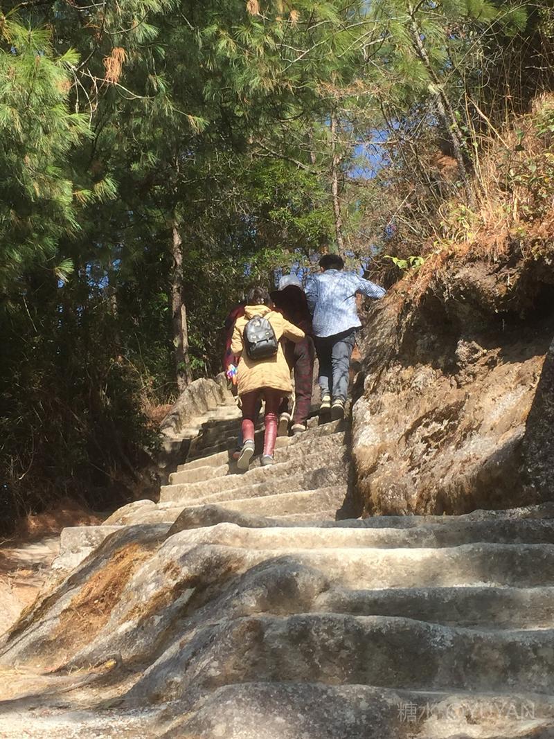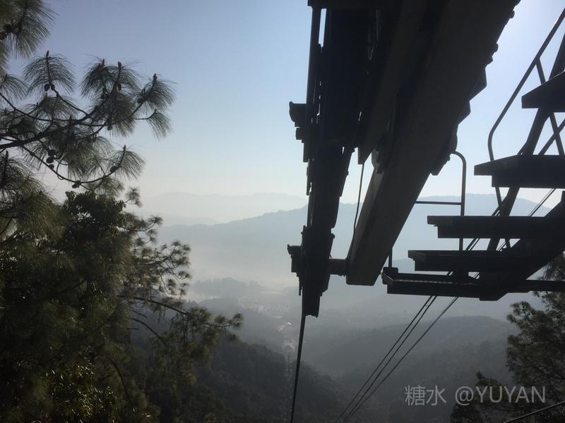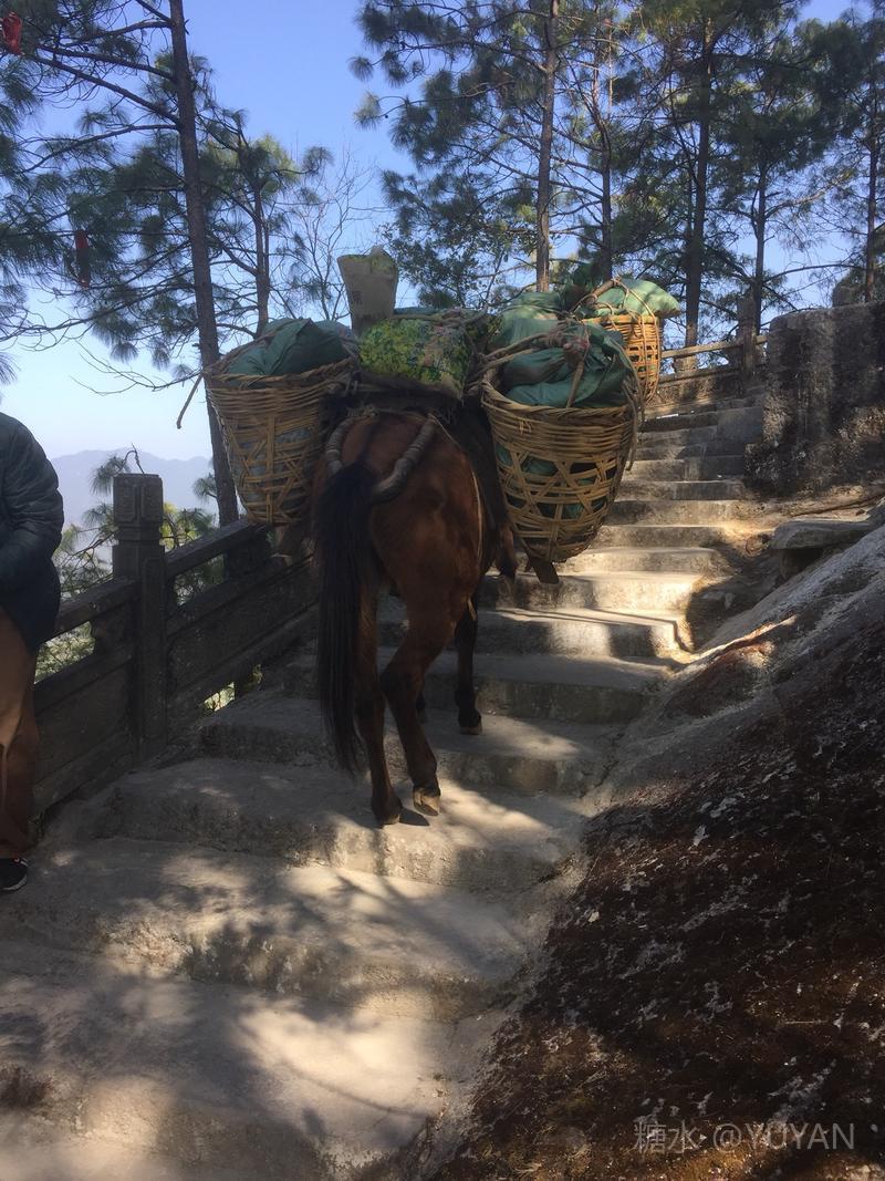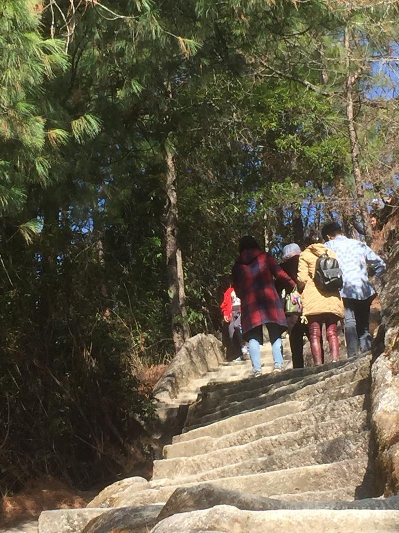 去到云峰山,首先要乘坐电缆车到山顶, 然后登2700余石头阶梯, 才能到达海拔2448米的风光无限之处。在近峰顶的一处蟪岩上凿有四十三级近乎垂直的石梯,游人需扶着两旁的铁链才能拾级而上。当年徐霞客至此,曾闻“猿声千百,唱和其间”。如今猿声已杳,“唱和其间”的便只有因恐惧或刺激而失声惊叫的游人了——好在延梯设有助攀链,可保有惊无险。