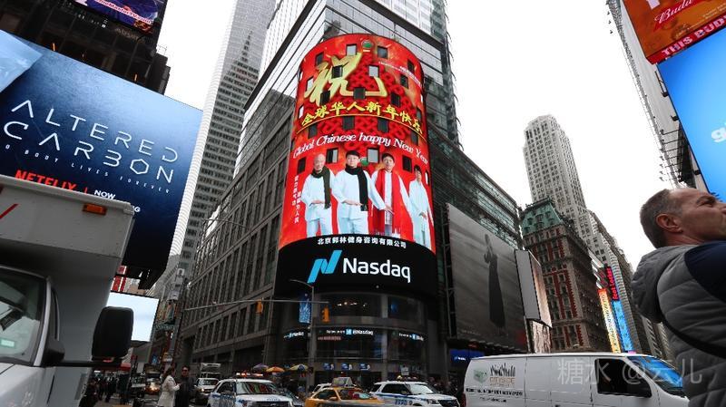 中国品牌全球巡展 郭林新气功 美国 纽约 时代广场 纳斯达克大屏 祝全球华人新年快乐!