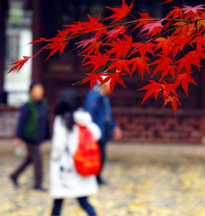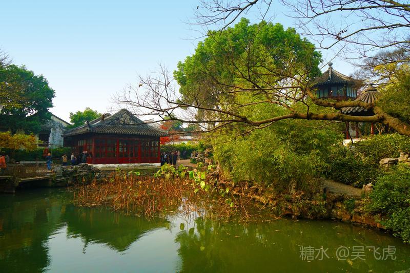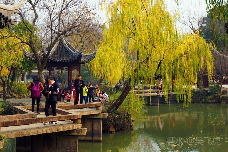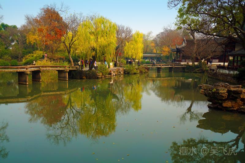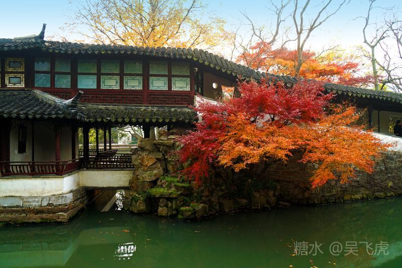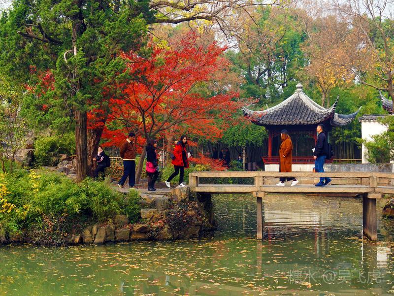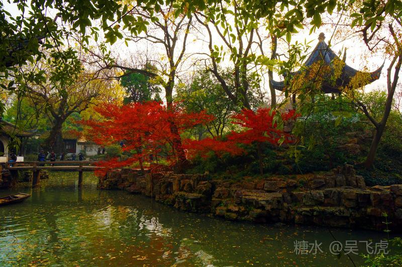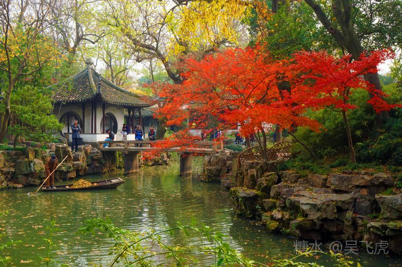 12月的苏州园林以秋景为主,无雪无荷,一片浓浓秋意。拙政园内一片枫叶正是火红,银杏叶金黄。而寒山寺和旁边的枫桥,游人依旧如织,看一看大运河,感受曾经枫桥的客船夜泊,听一听寒山寺的钟声,体验曾经姑苏秋冬的古韵。