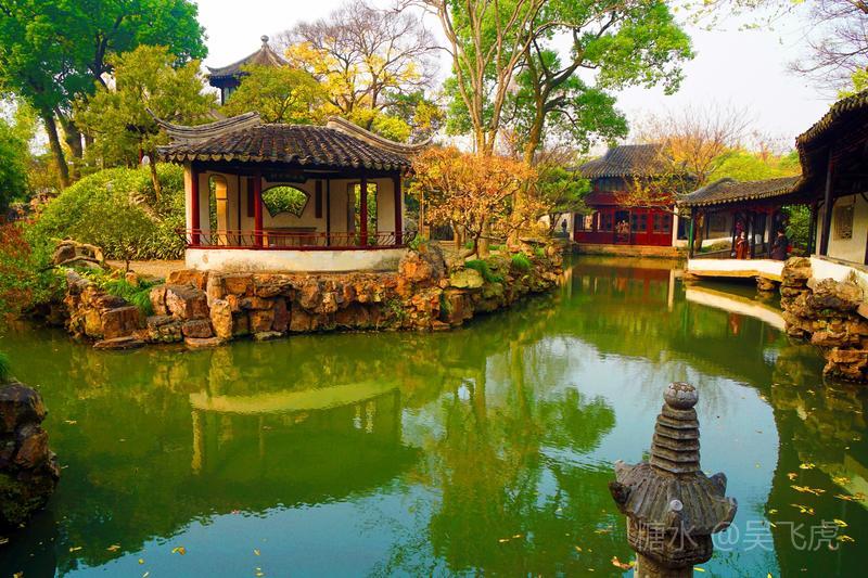 拙政园位于苏州城东北隅(东北街178号),是苏州存在的最大的古典园林,占地78亩。全园以水为中心,山水萦绕,厅榭精美,花木繁茂,具有浓郁的江南水乡特色。