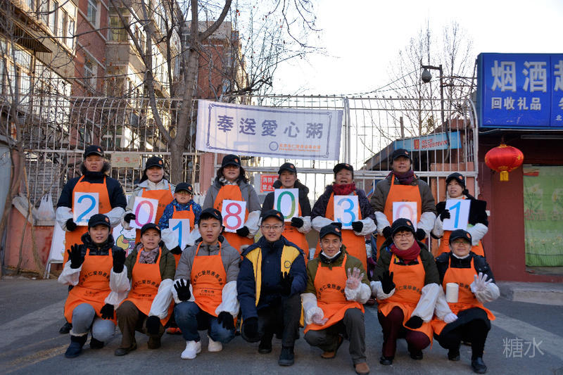 這是仁愛慈善基金會(學誠大和尚發起)的活動項目之一「仁愛心棧」,每天早上向路邊行人奉送愛心粥。北京有13家心棧,全國有48家。