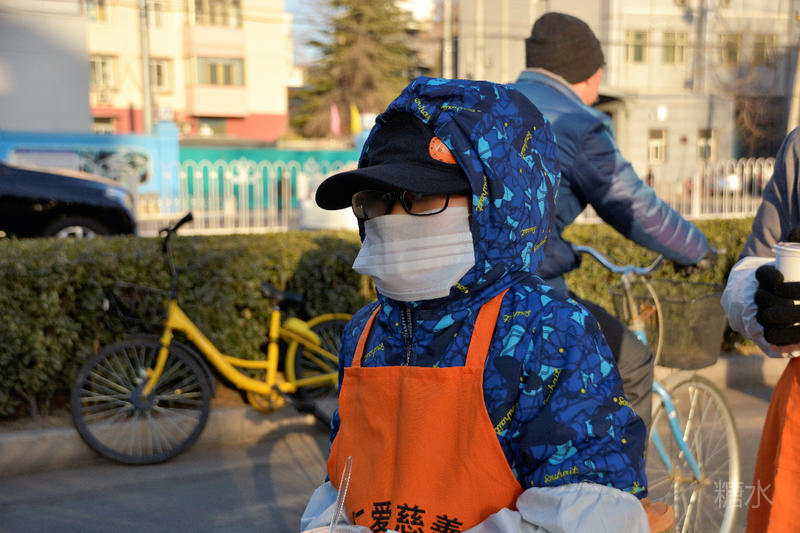 感触较深二是小焦(下面照片)的施粥参与。张师姐身体力行,以至于儿子小焦早早有缘于乐善仁行。北京初春三月寒气仍盛,但我从中真心感受到温暖。温暖真的可以在善念相续中链接、传递......