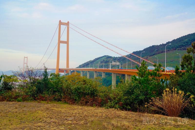 第四天(12月6日)早晨在西湖的花港观鱼赏花观景,中午抵达绍兴参观鲁迅故里,下午转程舟山,晚上夜宿普陀山。在下午的沿途中,路经舟山跨海大桥,其中在西堠门大桥处停车,漫步1公里海堤及观景台,观赏雄伟的大桥。而金塘大桥片子是乘车用手机拍摄的。其余三座大桥只是在飞驰的大巴上车窗处一扫而过,没有留下桥影。