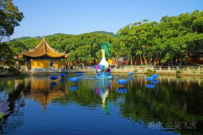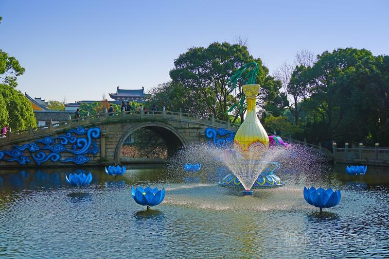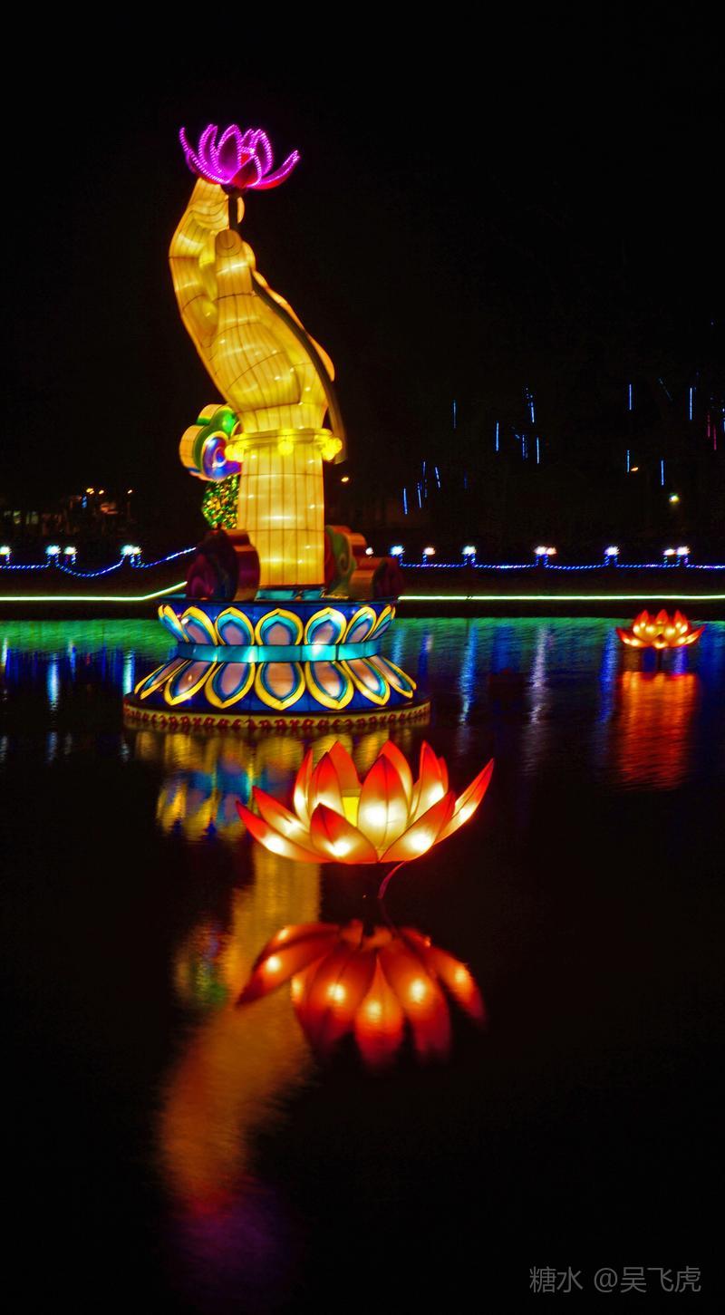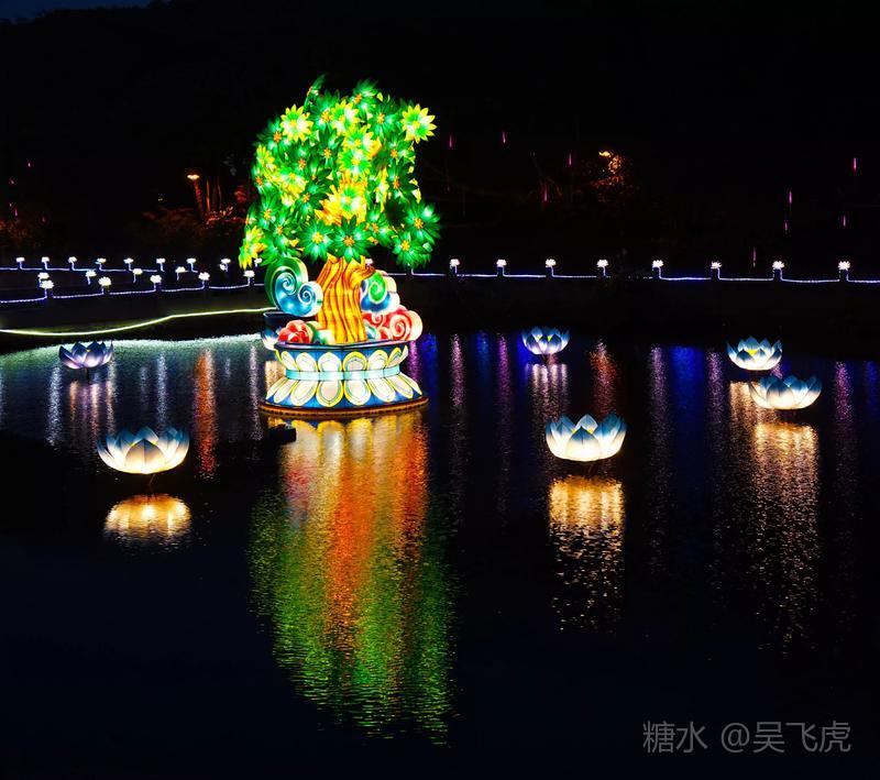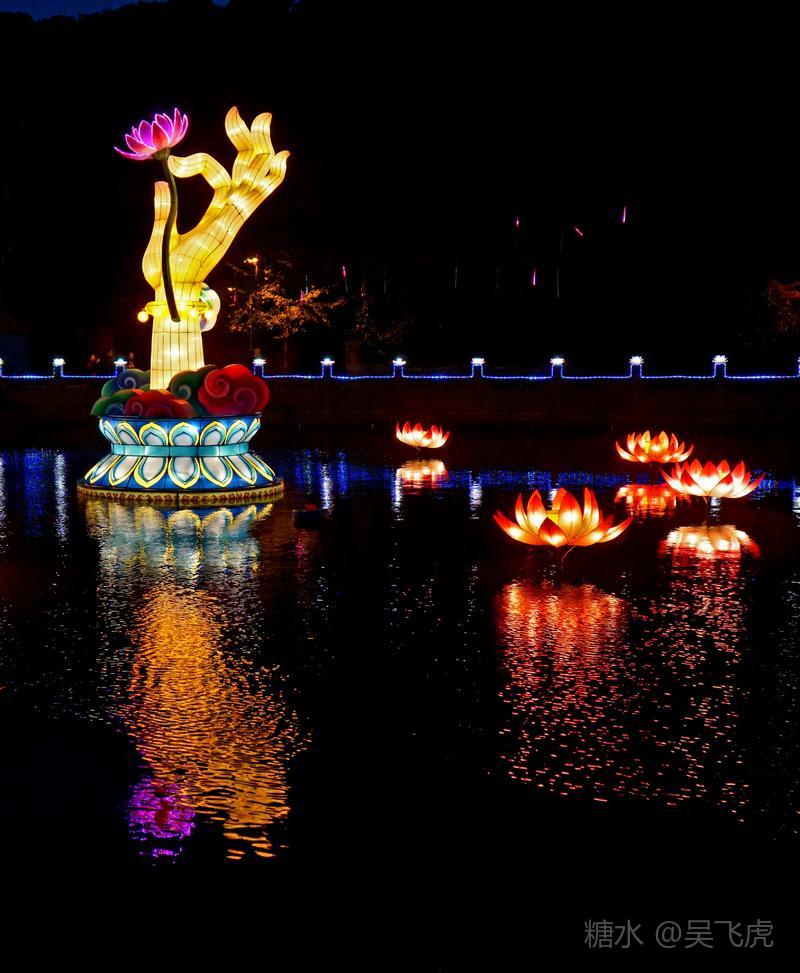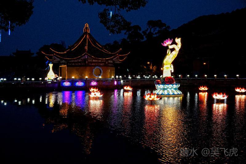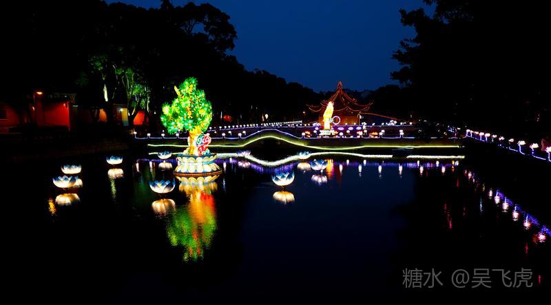 入夜普济寺莲池彩灯劲放,五彩斑斓