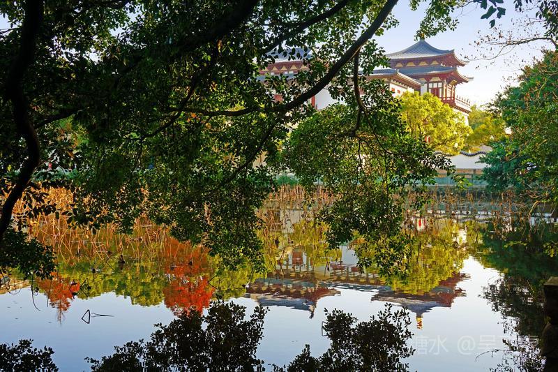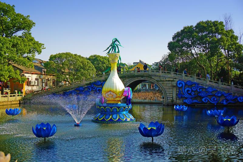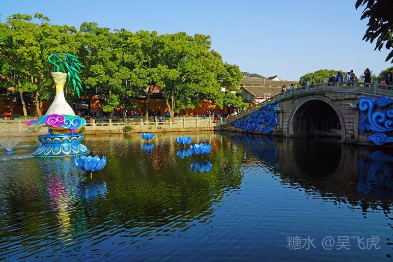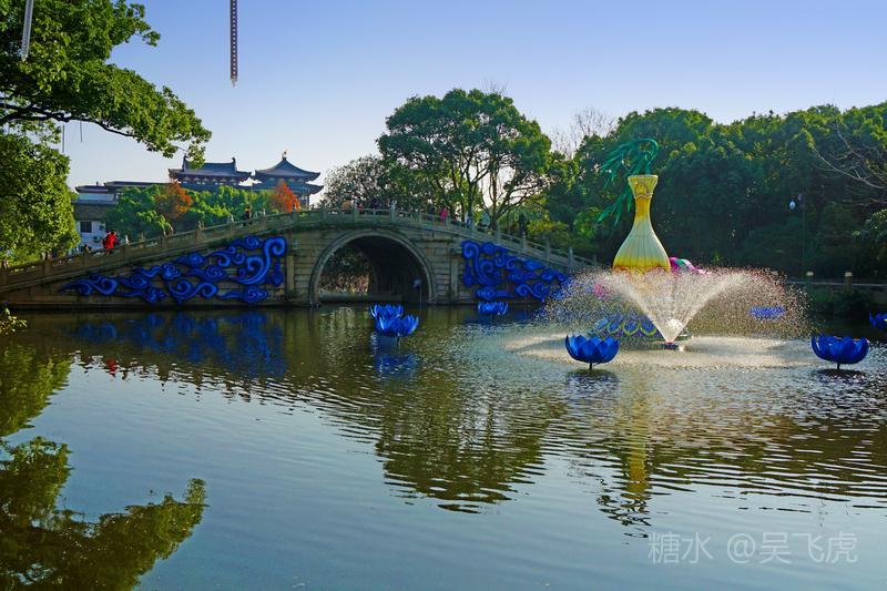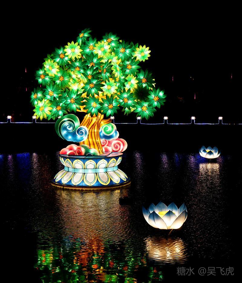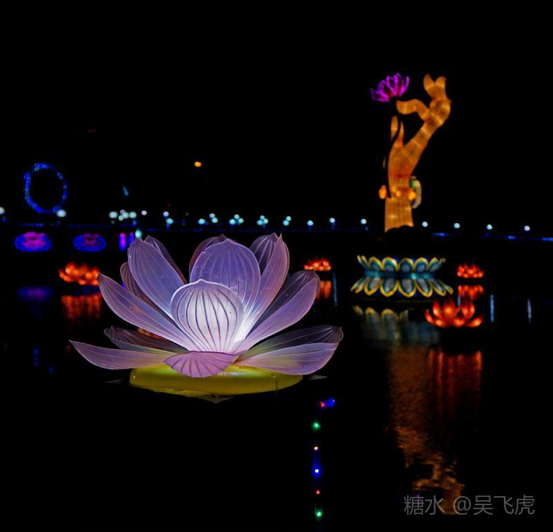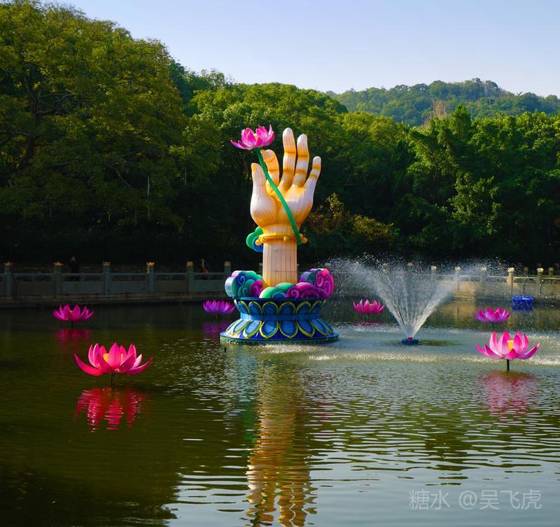 入夜普济寺莲池彩灯劲放,五彩斑斓