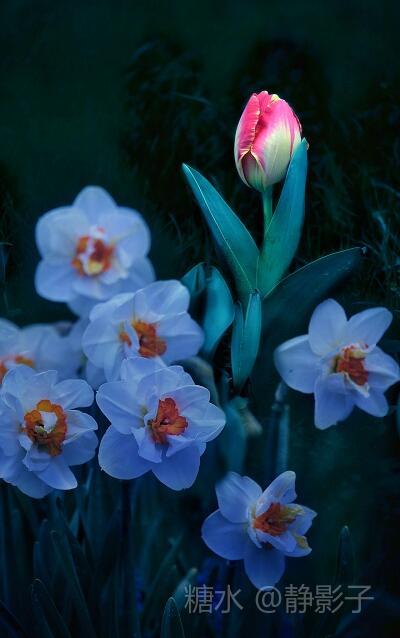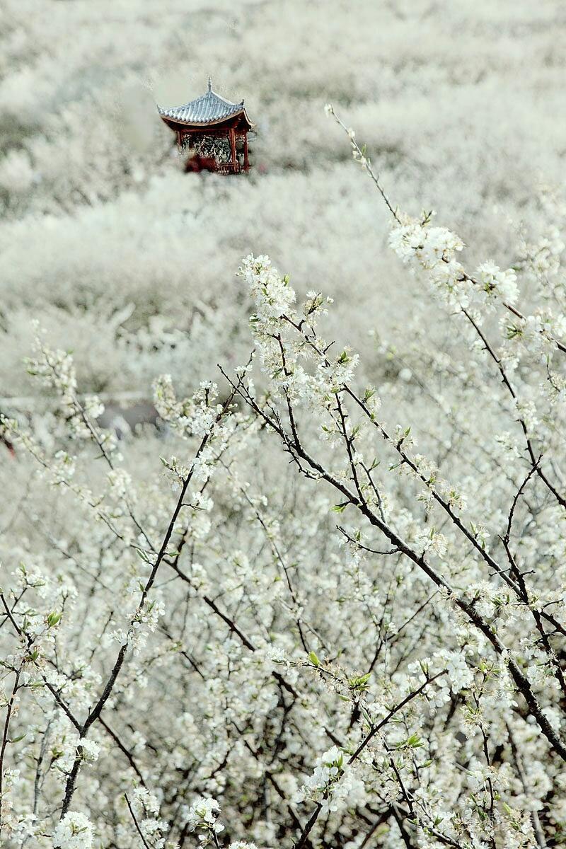 《李花》唐·李白 春国送暖百花开,迎春绽金它先来。 火烧叶林红霞落,李花怒放一树白。