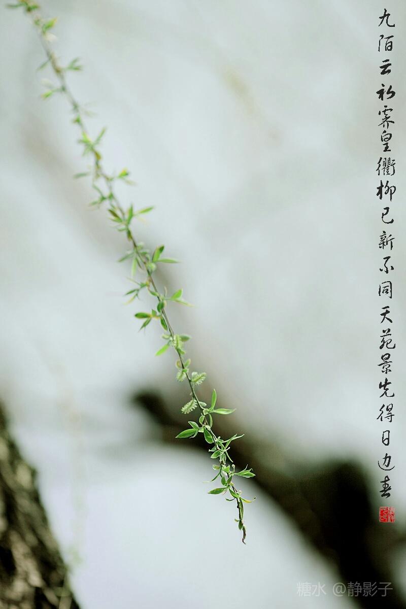 《咏柳》唐·贺知章 碧玉妆成一树高,万条垂下绿丝绦。 不知细叶谁裁出,二月春风似剪刀。