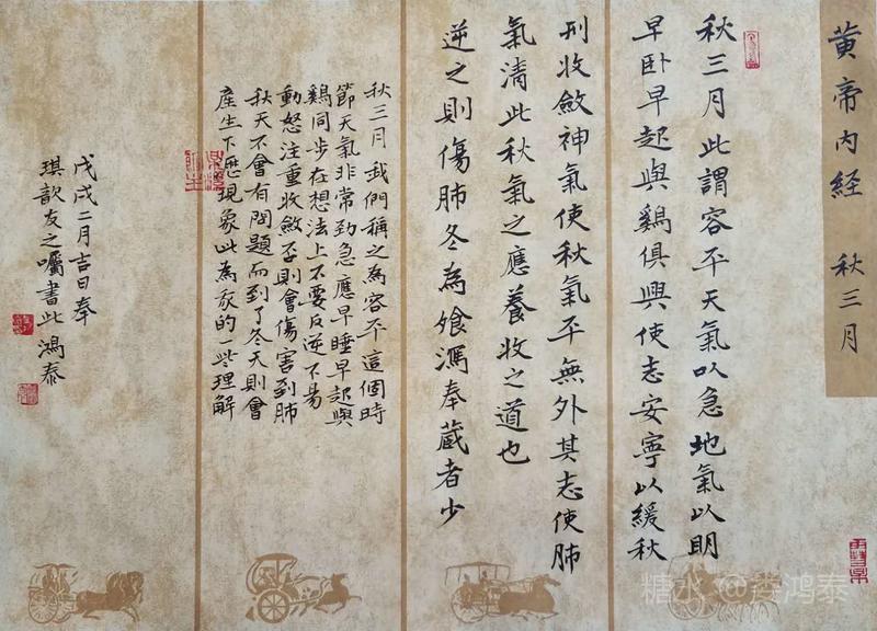 秋三月,此谓容平。天气以急,地气以明,早卧早起,与鸡俱兴,使志安宁,以缓秋刑,收敛神气,使秋气平,无外其志,使肺气清,此秋气之应,养收之道也。逆之则伤肺,冬为飧泄,奉藏者少。