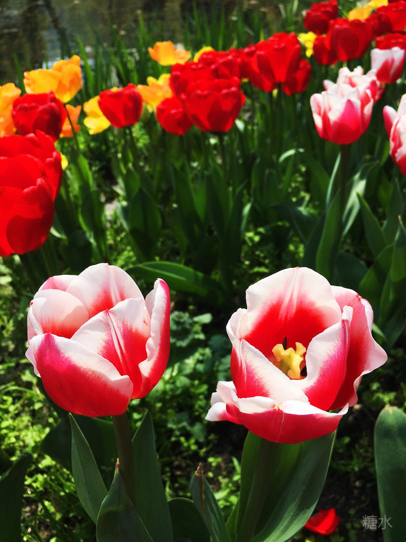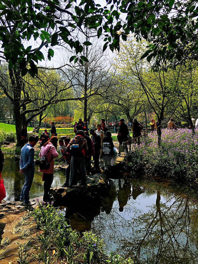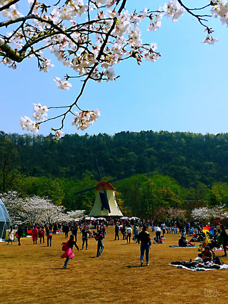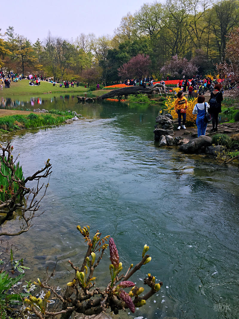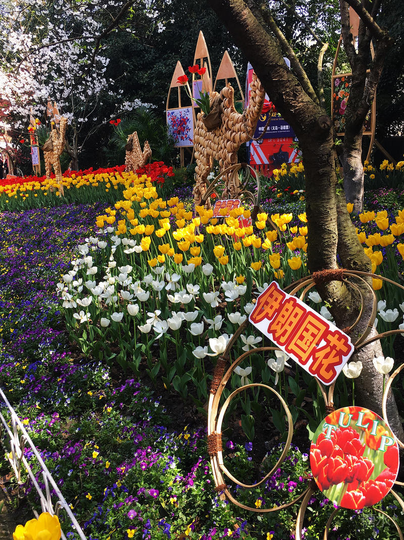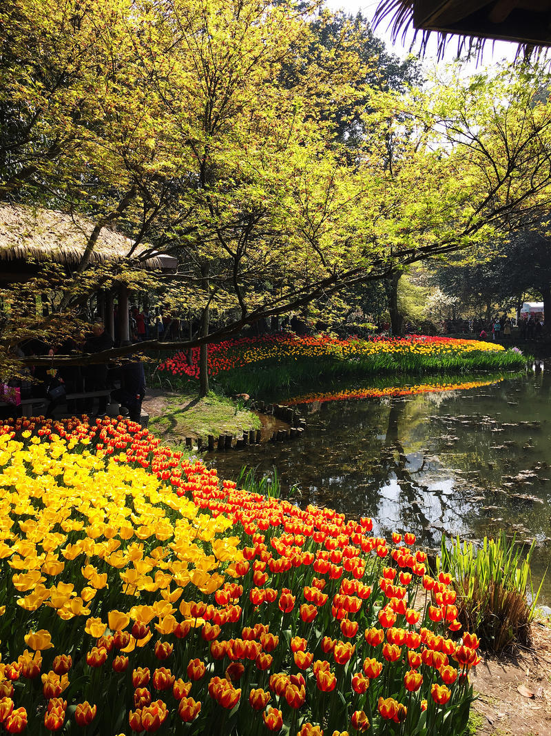 桥下是溪水、桥上是游人,溪边是游人、头上是樱花;远处五彩缤纷郁金香、近处漫天樱花如飞雪。流水声、嬉笑声伴着拍照的咔嚓声、随倒映着花海的波浪将温馨和浪漫渐渐送向远方......