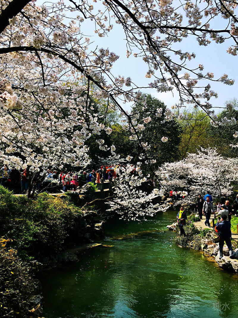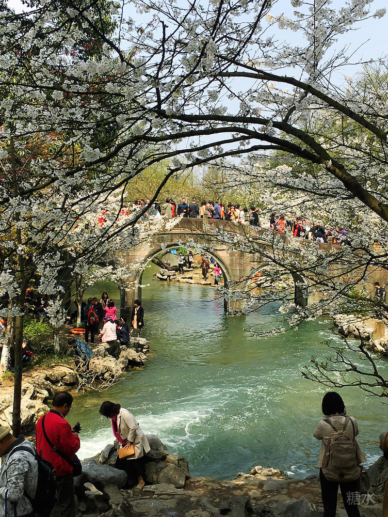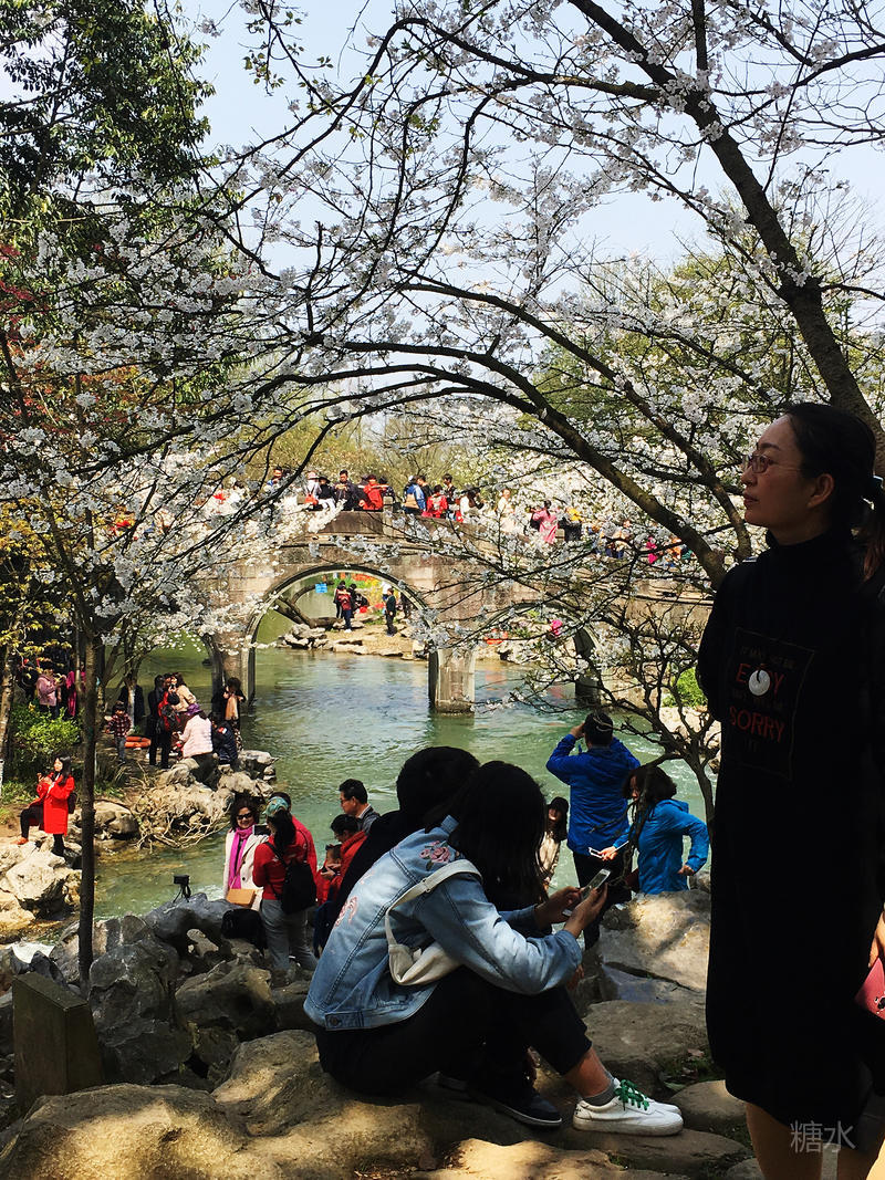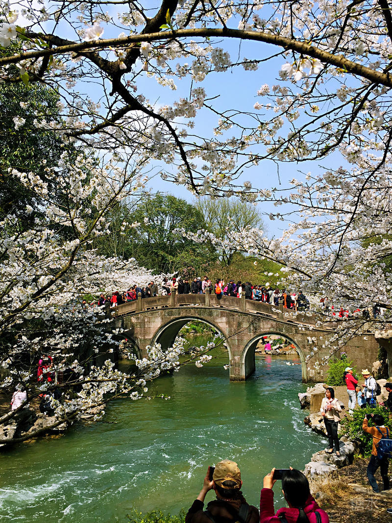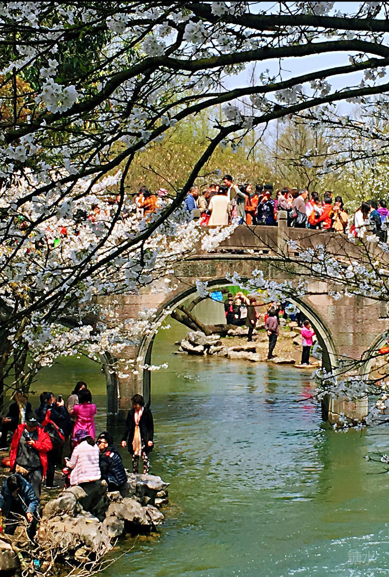 樱花、石桥、流水相映成趣,委婉动人。走累了,坐下讲讲话,发发微信,在别人的照片里,你同样也是一景。漫步在花海中的每一个人,都是流动的风景。拍者醉,游者同样也是醉......